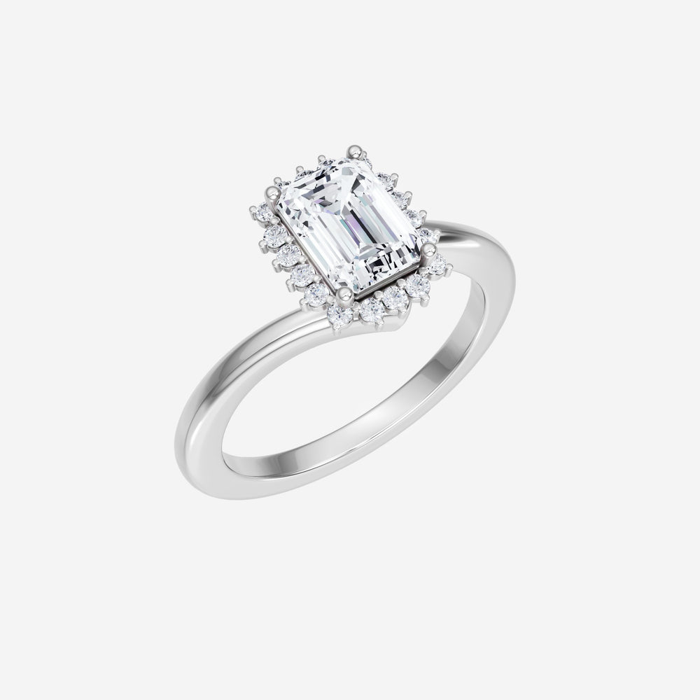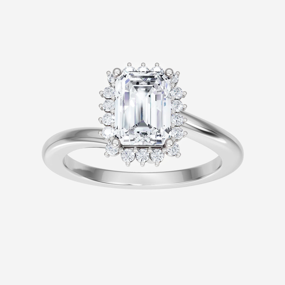 You’ve designed a ring that reflects lasting elegance and grace! Crafted from 14k White Gold, this exquisite Emerald lab-grown diamond is the centerpiece of this unique design. This Bypass Shank with a Diana Halo head showcases the brilliance of the Emerald diamond, creating a timeless look. This elegant piece is the perfect symbol of love, strength, and timeless beauty.