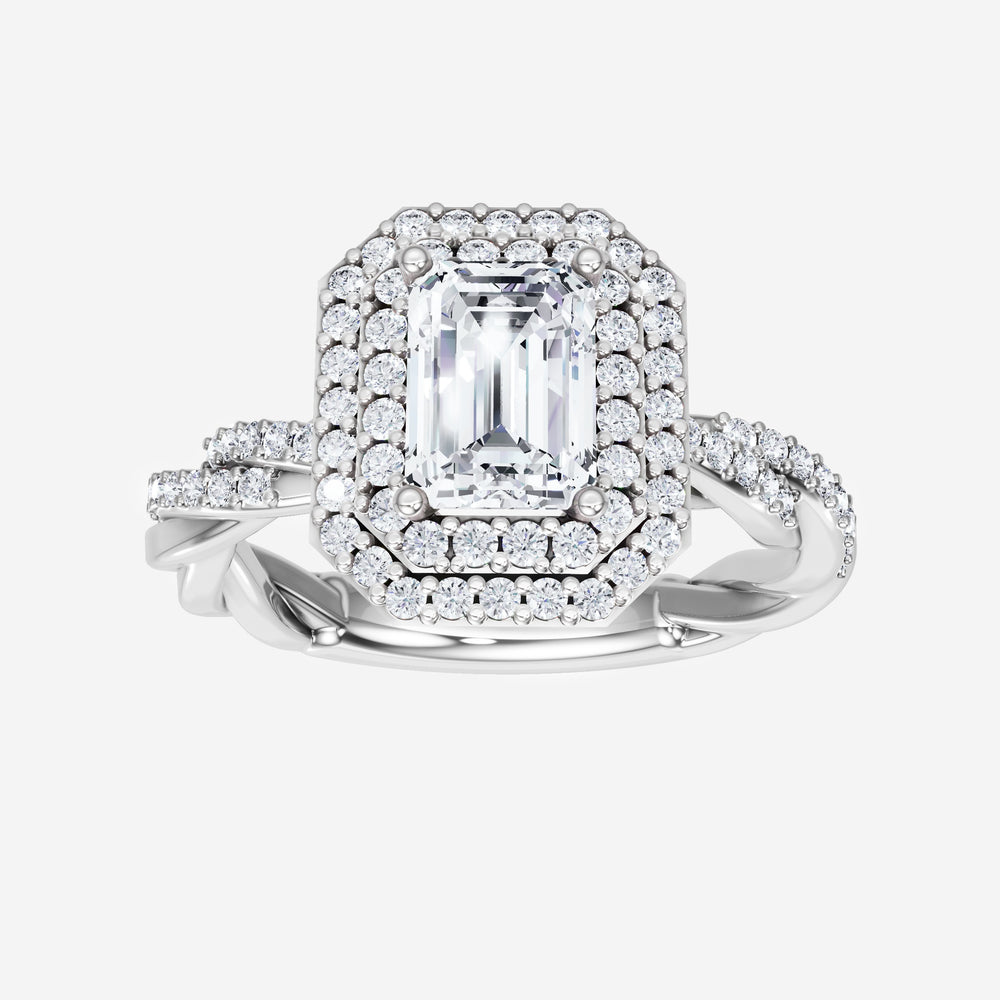 You’ve designed a ring that reflects lasting elegance and grace! Crafted from 14k White Gold, this exquisite Emerald lab-grown diamond is the centerpiece of this unique design. This Rope Diamond Shank with a Double Halo head showcases the brilliance of the Emerald diamond, creating a timeless look. This elegant piece is the perfect symbol of love, strength, and timeless beauty.