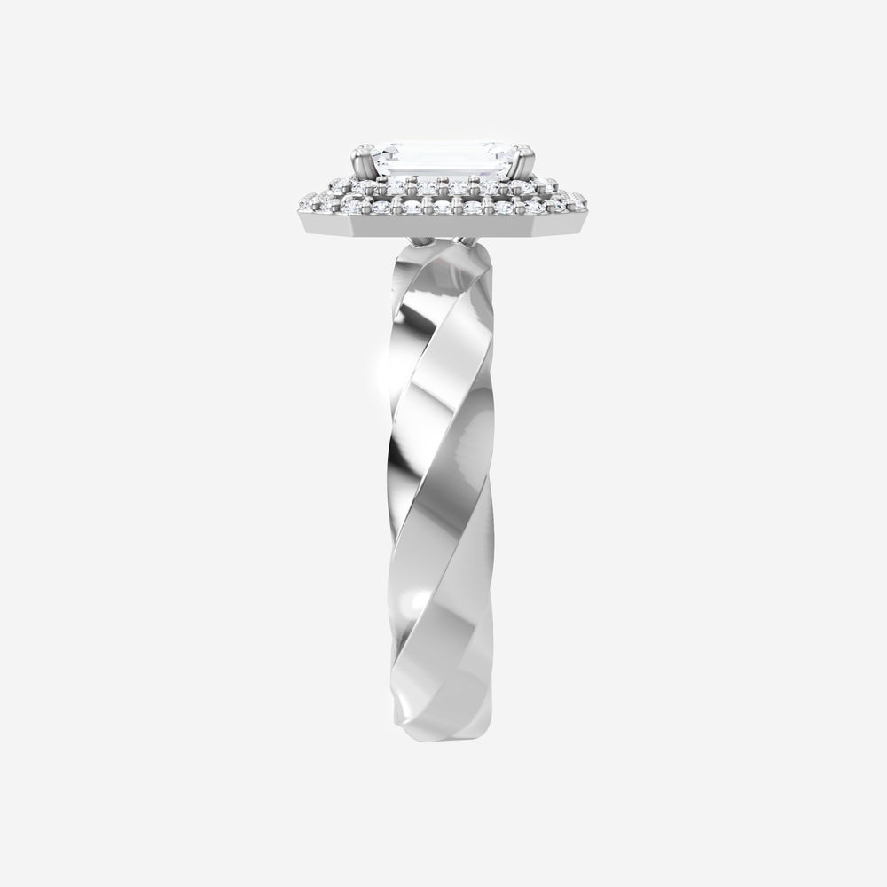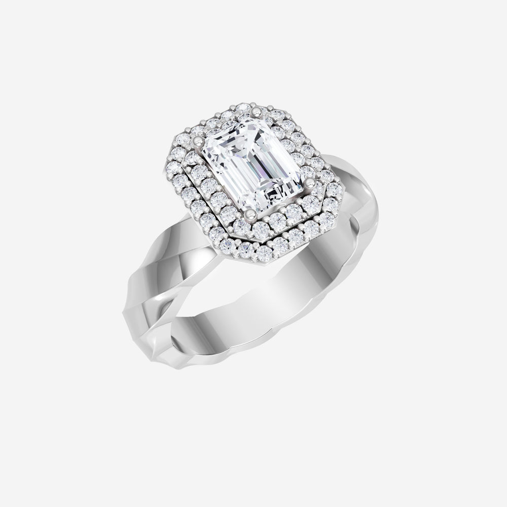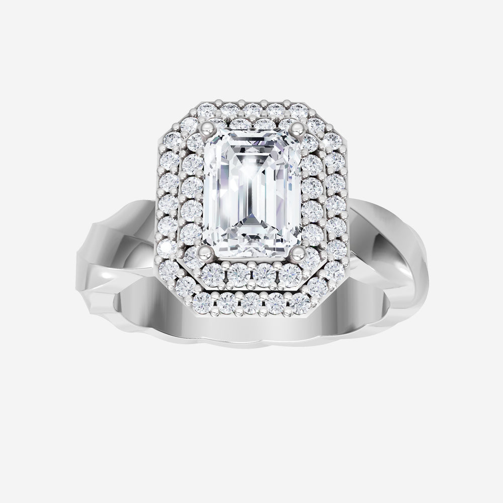 You’ve designed a ring that reflects lasting elegance and grace! Crafted from 14k White Gold, this exquisite Emerald lab-grown diamond is the centerpiece of this unique design. This Twisted Shank with a Double Halo head showcases the brilliance of the Emerald diamond, creating a timeless look. This ring will become a cherished reminder of life's most treasured moments.