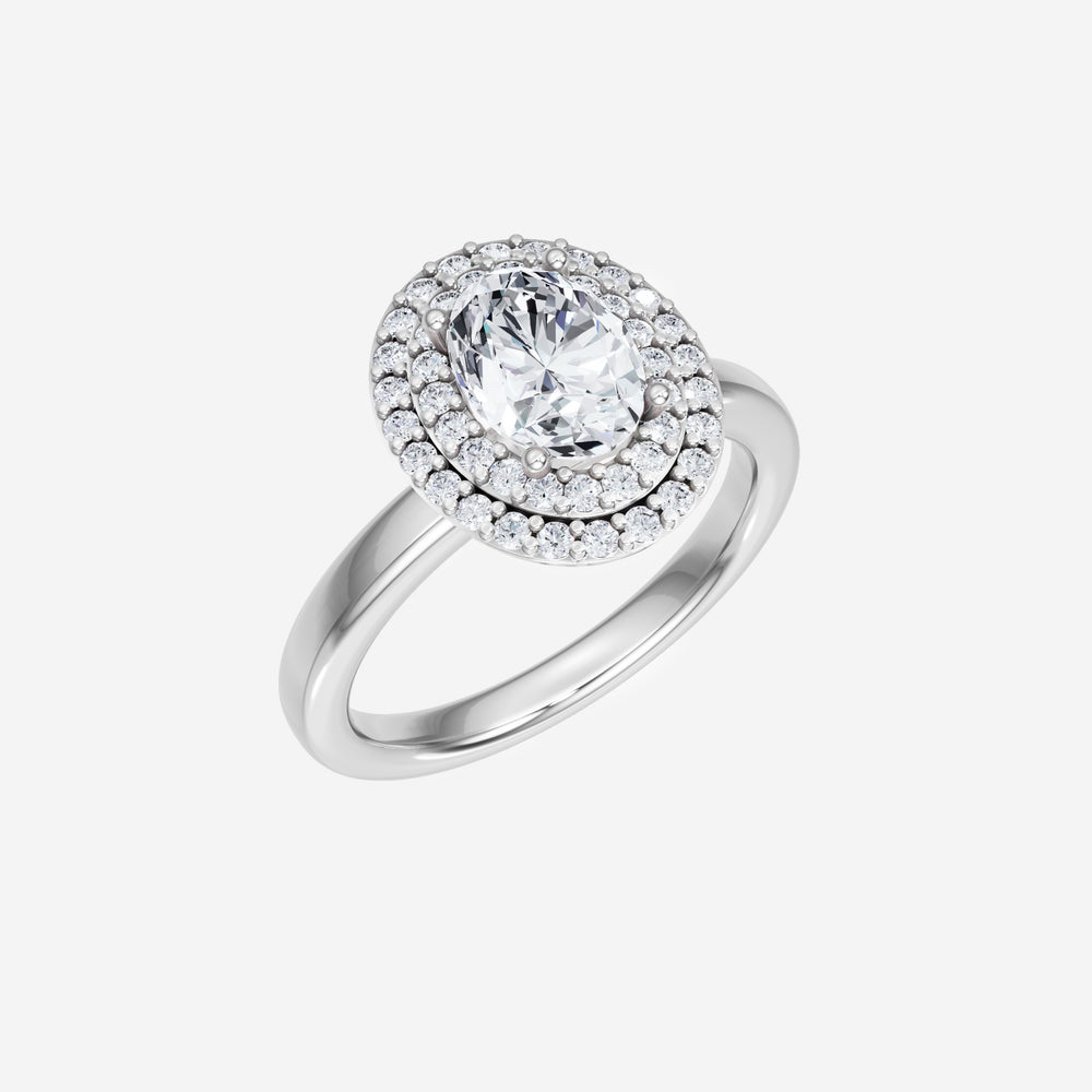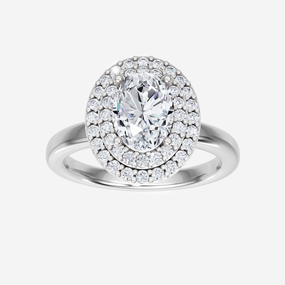 You’ve designed a ring that reflects lasting elegance and grace! Crafted from 14k White Gold, this exquisite Oval lab-grown diamond is the centerpiece of this unique design. This Basic Plain Shank with a Double Halo head showcases the brilliance of the Oval diamond, creating a timeless look. Ideal for those who seek both beauty and meaning, this ring will stand as a testament to cherished memories.