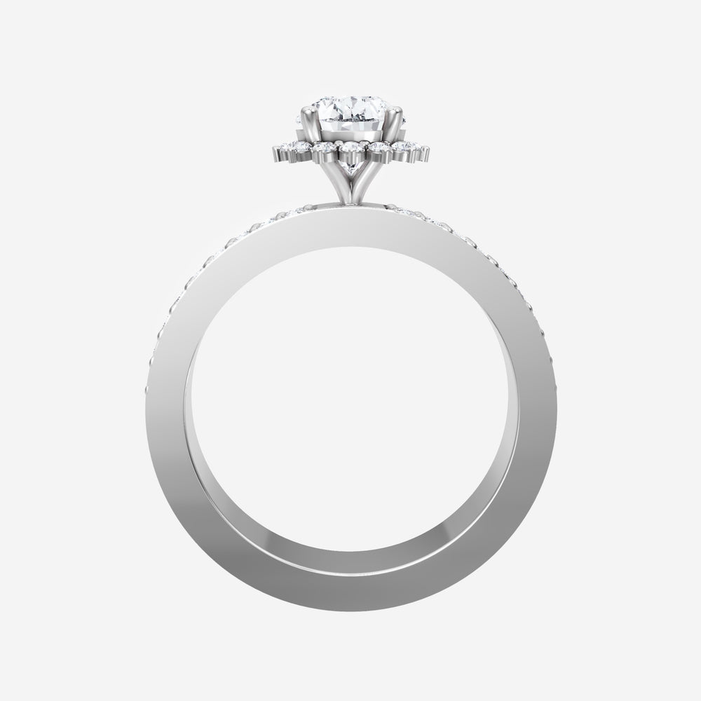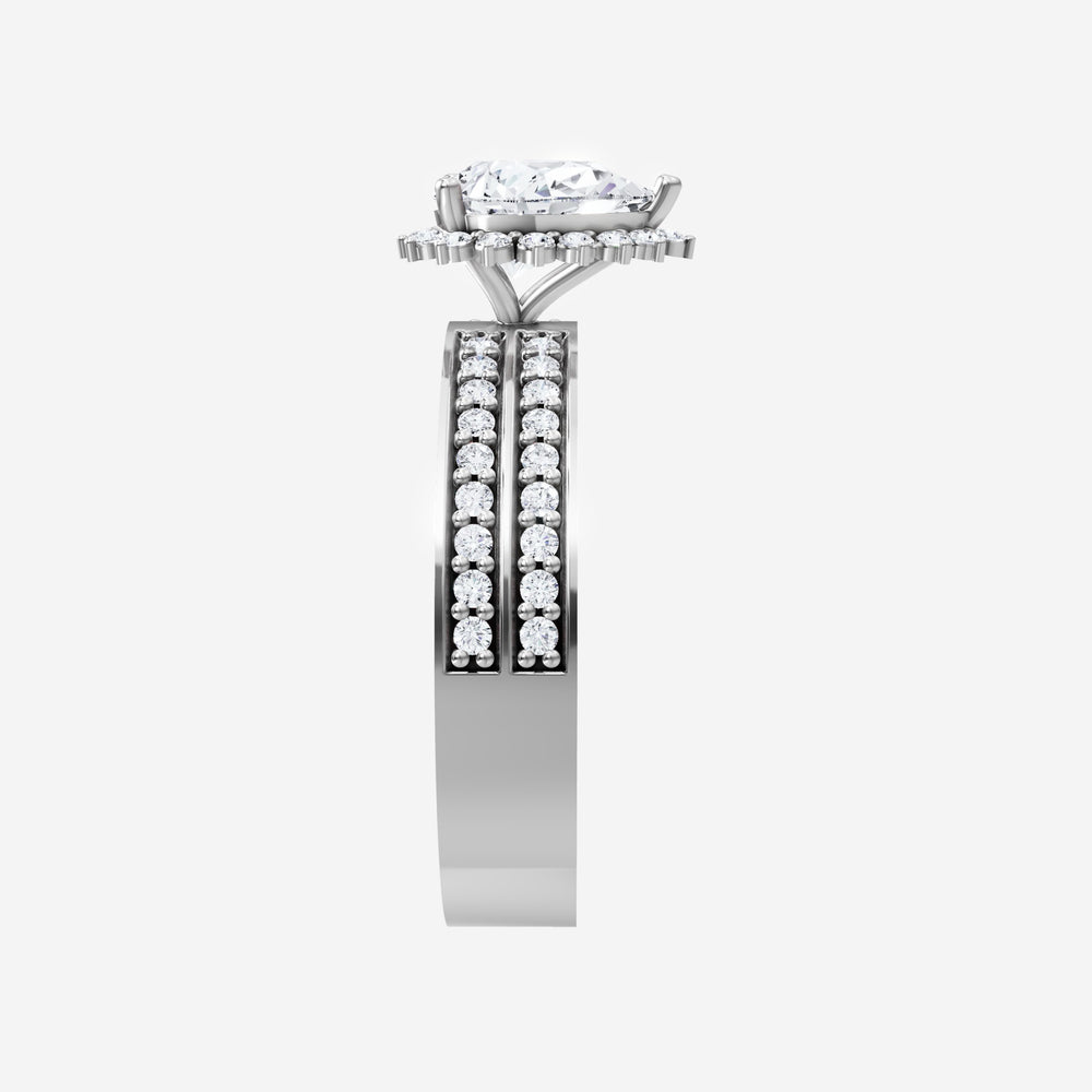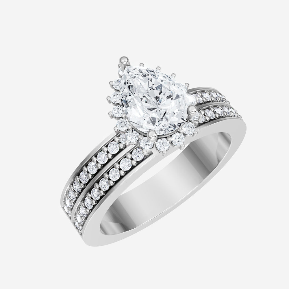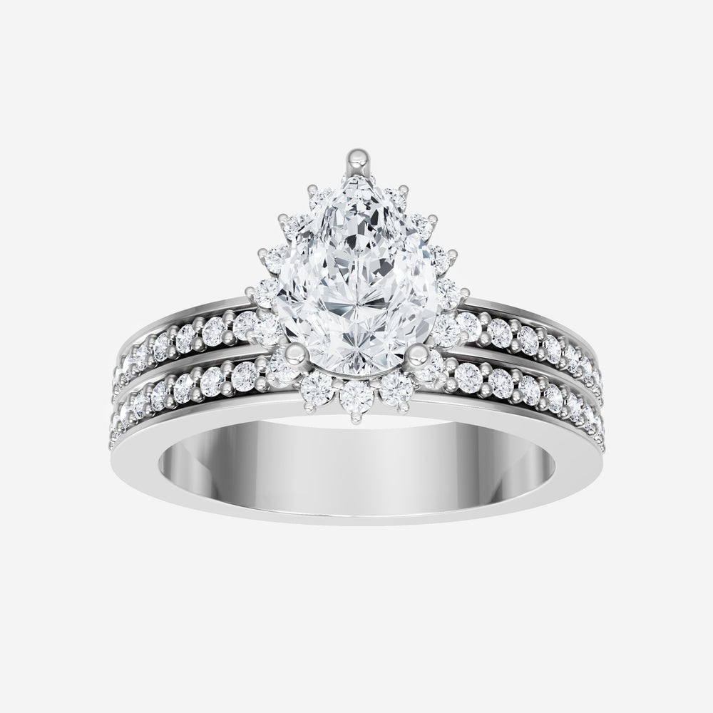 You’ve designed a ring that reflects lasting elegance and grace! Crafted from 14k White Gold, this exquisite Pear lab-grown diamond is the centerpiece of this unique design. This Double Row Pave with a Diana Halo head showcases the brilliance of the Pear diamond, creating a timeless look. It's a piece of elegance and beauty, perfect for marking life's most beautiful occasions.