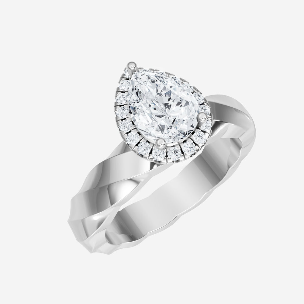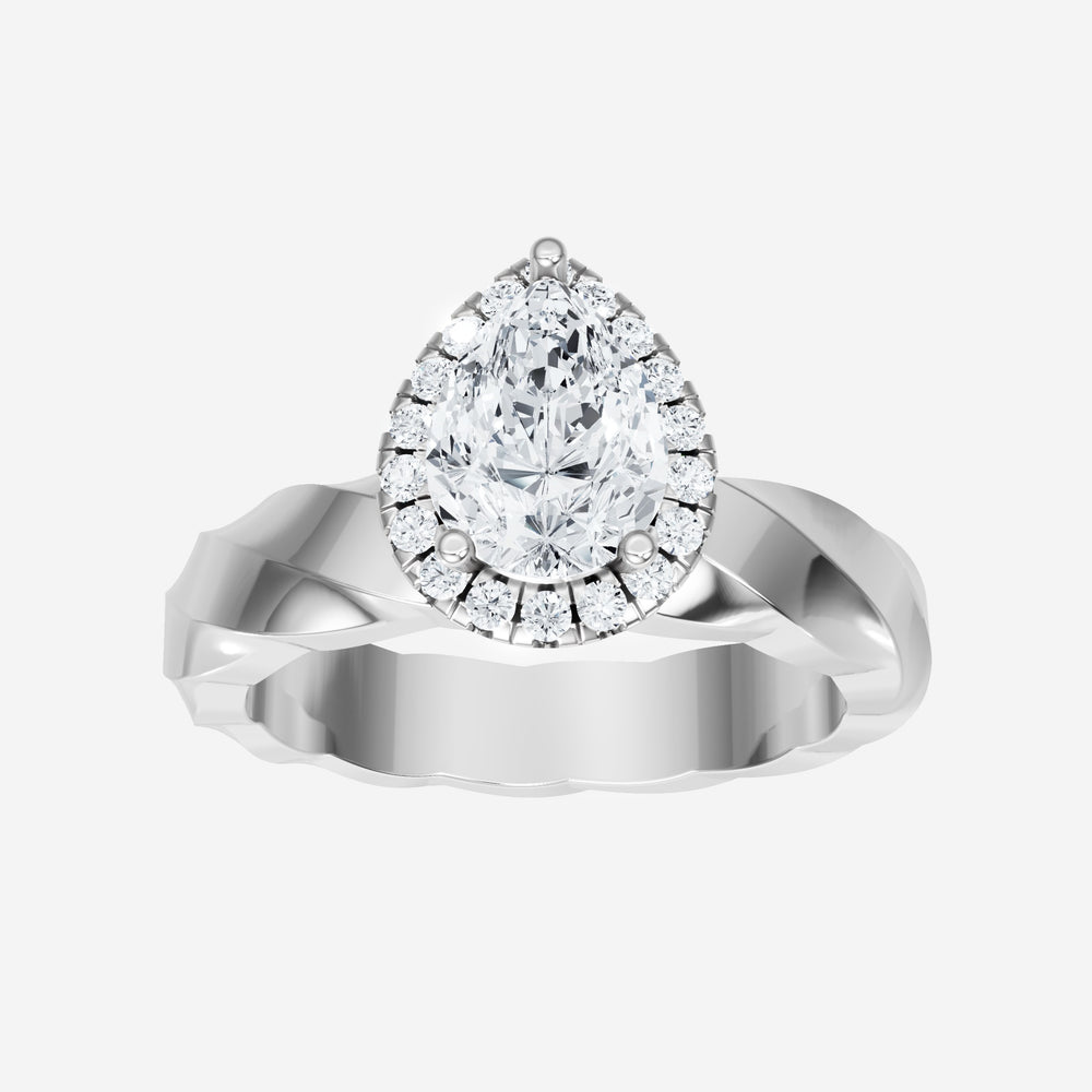You’ve designed a ring that reflects lasting elegance and grace! Crafted from 14k White Gold, this exquisite Pear lab-grown diamond is the centerpiece of this unique design. This Twisted Shank with a Micro Halo head showcases the brilliance of the Pear diamond, creating a timeless look. This ring will become a cherished reminder of life's most treasured moments.