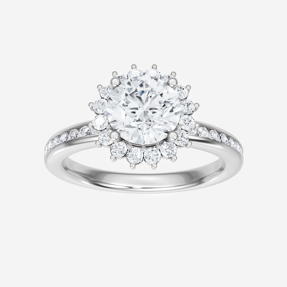You’ve designed a ring that reflects lasting elegance and grace! Crafted from 14k White Gold, this exquisite Round lab-grown diamond is the centerpiece of this unique design. This Channel Set Shank with a Diana Halo head showcases the brilliance of the Round diamond, creating a timeless look. This ring will become a cherished reminder of life's most treasured moments.