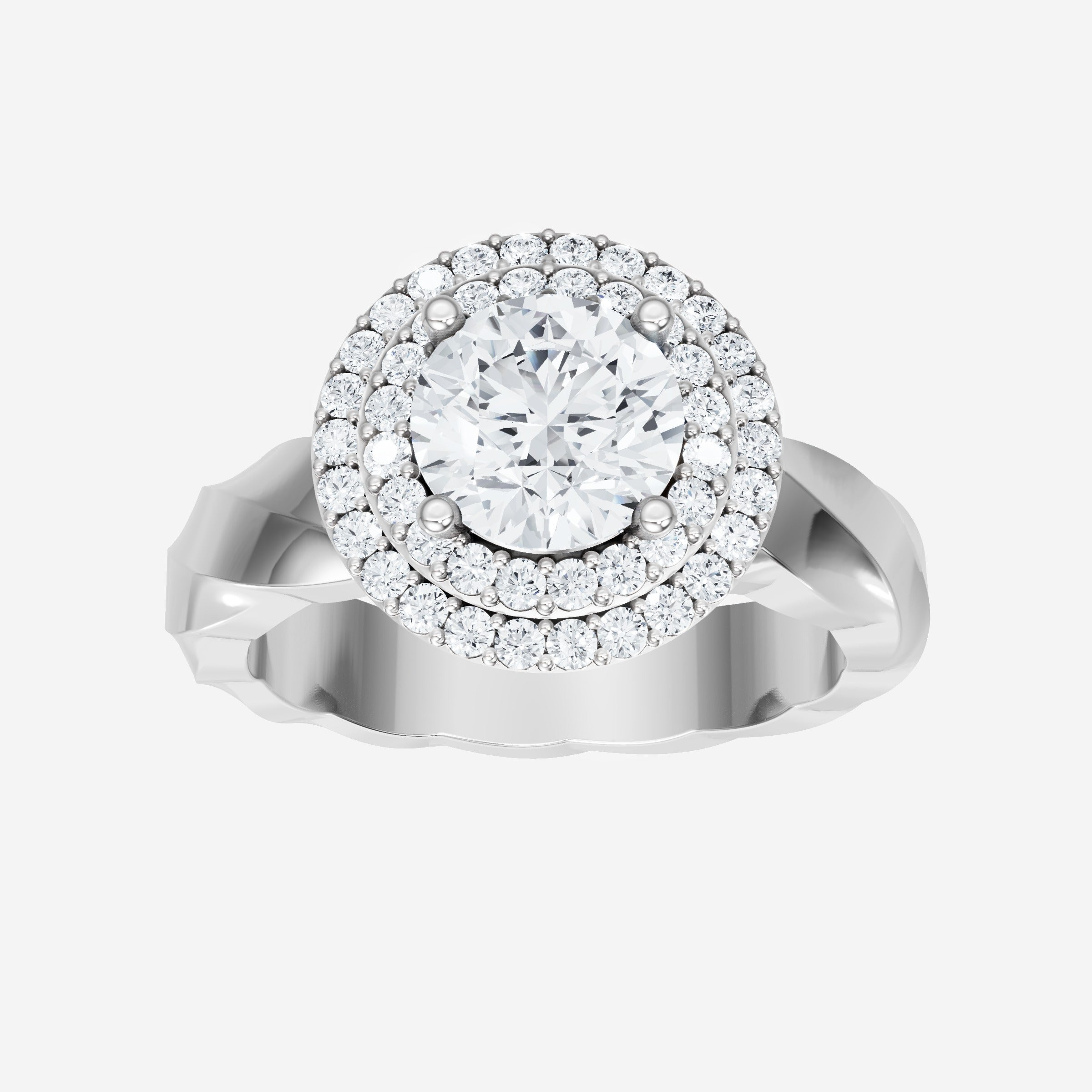 You’ve designed a ring that reflects lasting elegance and grace! Crafted from 14k White Gold, this exquisite Round lab-grown diamond is the centerpiece of this unique design. This Twisted Shank with a Double Halo head showcases the brilliance of the Round diamond, creating a timeless look. This ring will become a cherished reminder of life's most treasured moments.