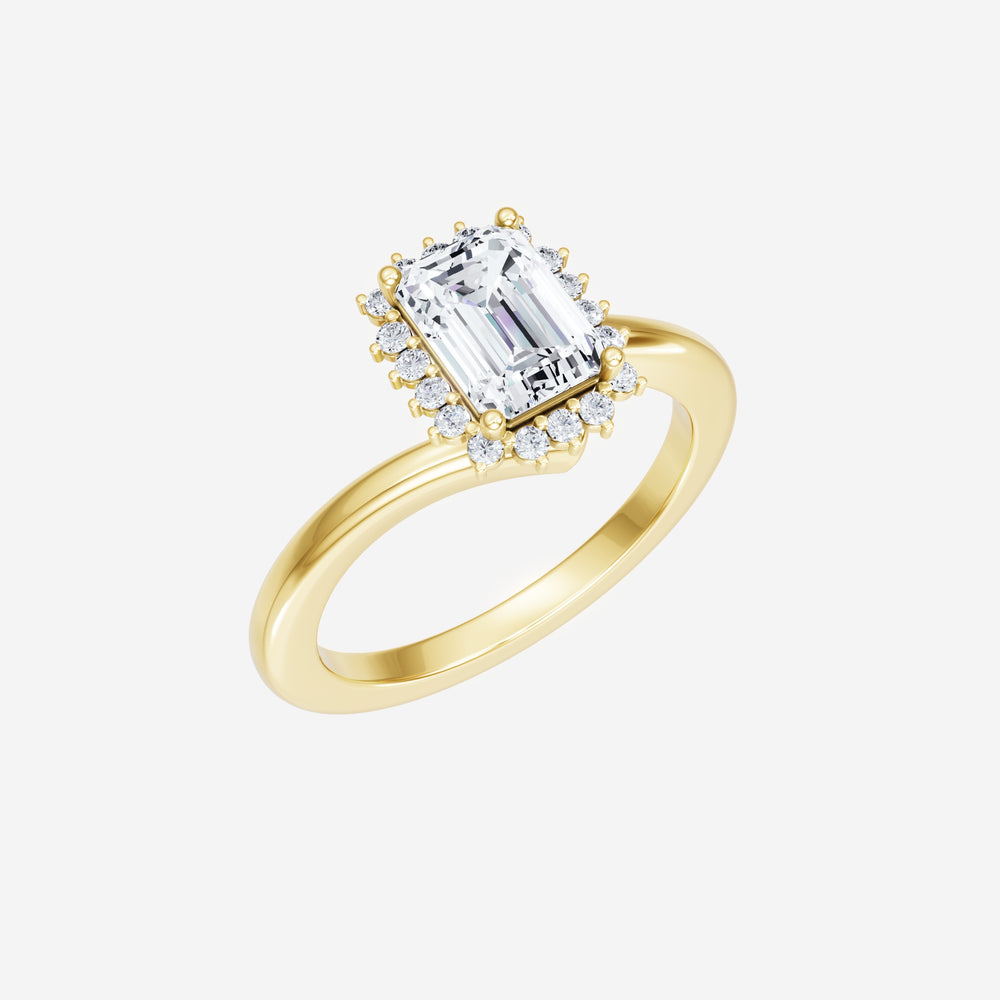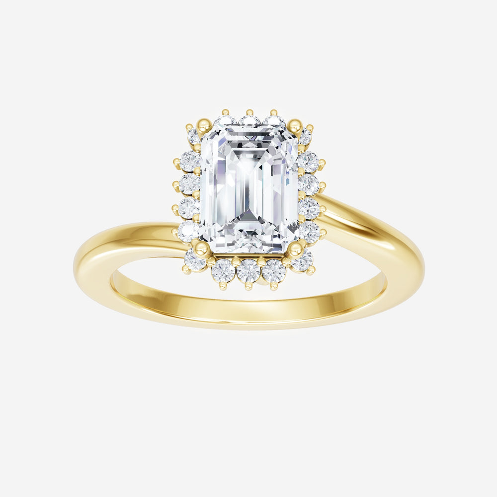 You’ve designed a ring that reflects lasting elegance and grace! Crafted from 14k Yellow Gold, this exquisite Emerald lab-grown diamond is the centerpiece of this unique design. This Bypass Shank with a Diana Halo head showcases the brilliance of the Emerald diamond, creating a timeless look. This ring will become a cherished reminder of life's most treasured moments.