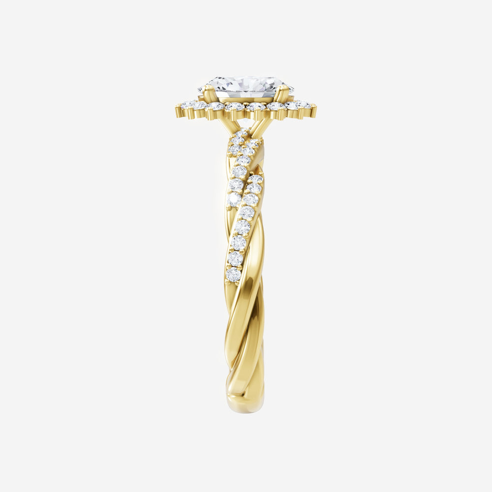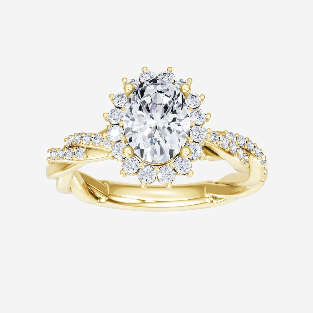 You’ve designed a ring that reflects lasting elegance and grace! Crafted from 14k Yellow Gold, this exquisite Oval lab-grown diamond is the centerpiece of this unique design. This Rope Diamond Shank with a Diana Halo head showcases the brilliance of the Oval diamond, creating a timeless look. This stunning ring makes the perfect symbol of everlasting love and devotion.