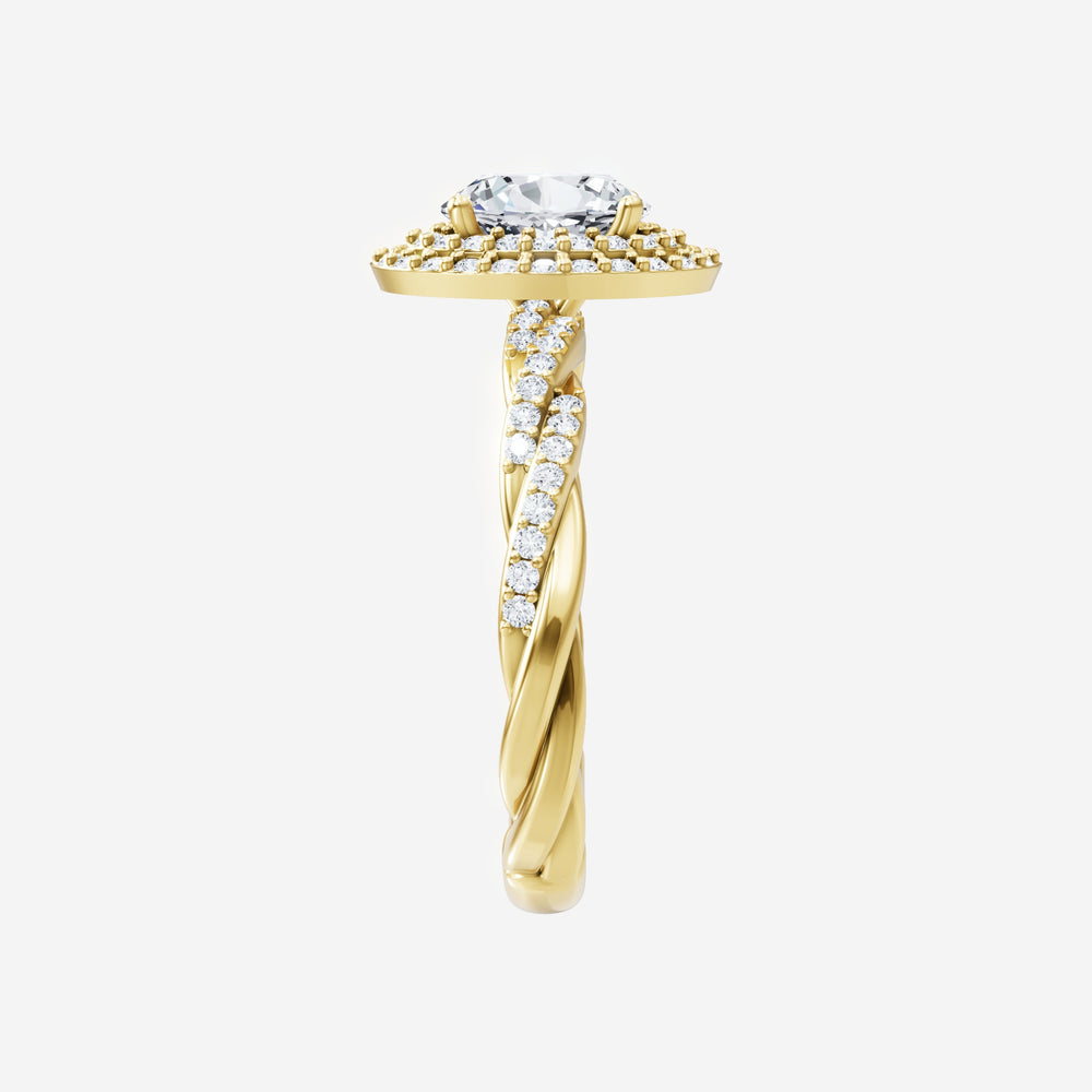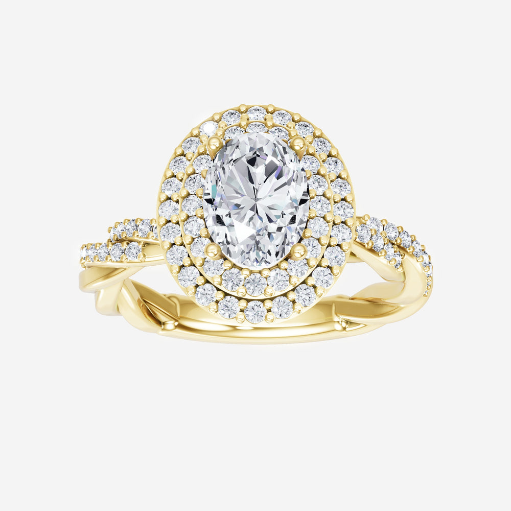 You’ve designed a ring that reflects lasting elegance and grace! Crafted from 14k Yellow Gold, this exquisite Oval lab-grown diamond is the centerpiece of this unique design. This Rope Diamond Shank with a Double Halo head showcases the brilliance of the Oval diamond, creating a timeless look. This ring will become a cherished reminder of life's most treasured moments.