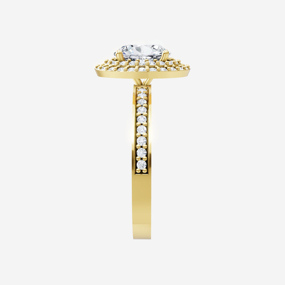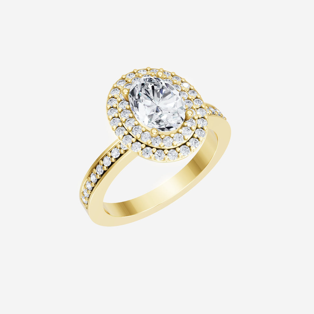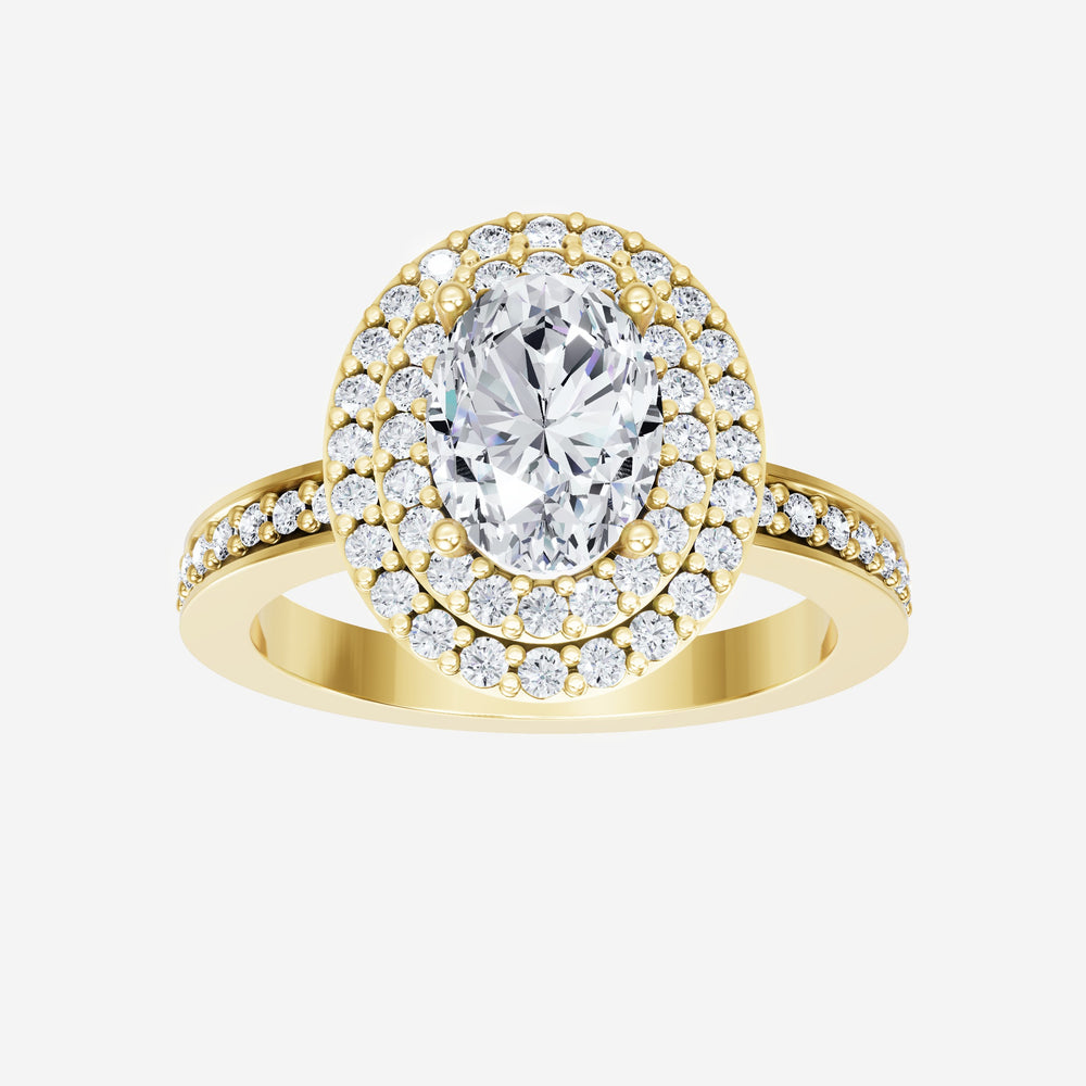 You’ve designed a ring that reflects lasting elegance and grace! Crafted from 14k Yellow Gold, this exquisite Oval lab-grown diamond is the centerpiece of this unique design. This Single Pave Shank with a Double Halo head showcases the brilliance of the Oval diamond, creating a timeless look. This stunning ring makes the perfect symbol of everlasting love and devotion.