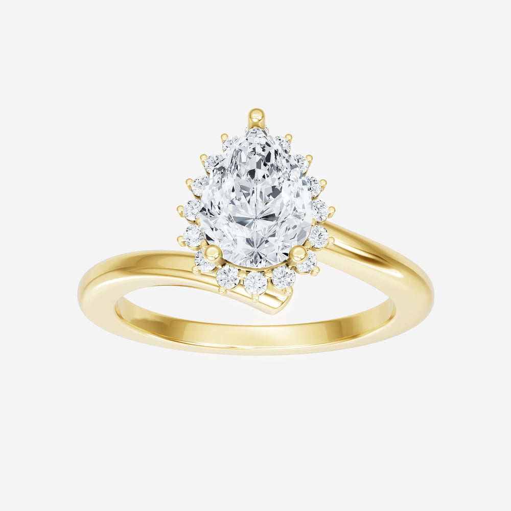 You’ve designed a ring that reflects lasting elegance and grace! Crafted from 14k Yellow Gold, this exquisite Pear lab-grown diamond is the centerpiece of this unique design. This Bypass Shank with a Diana Halo head showcases the brilliance of the Pear diamond, creating a timeless look. Ideal for those who seek both beauty and meaning, this ring will stand as a testament to cherished memories.