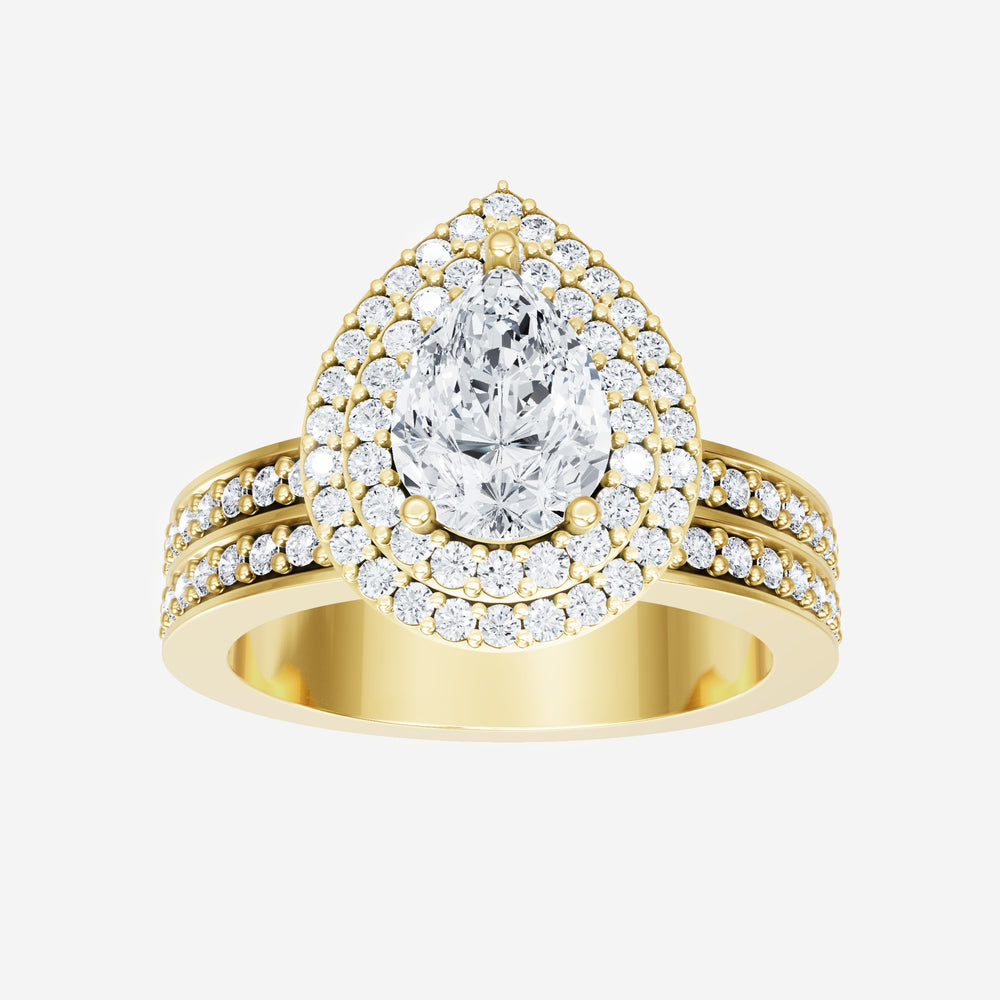 You’ve designed a ring that reflects lasting elegance and grace! Crafted from 14k Yellow Gold, this exquisite Pear lab-grown diamond is the centerpiece of this unique design. This Double Row Pave with a Double Halo head showcases the brilliance of the Pear diamond, creating a timeless look. With this ring, celebrate every moment of joy, success, and love.
