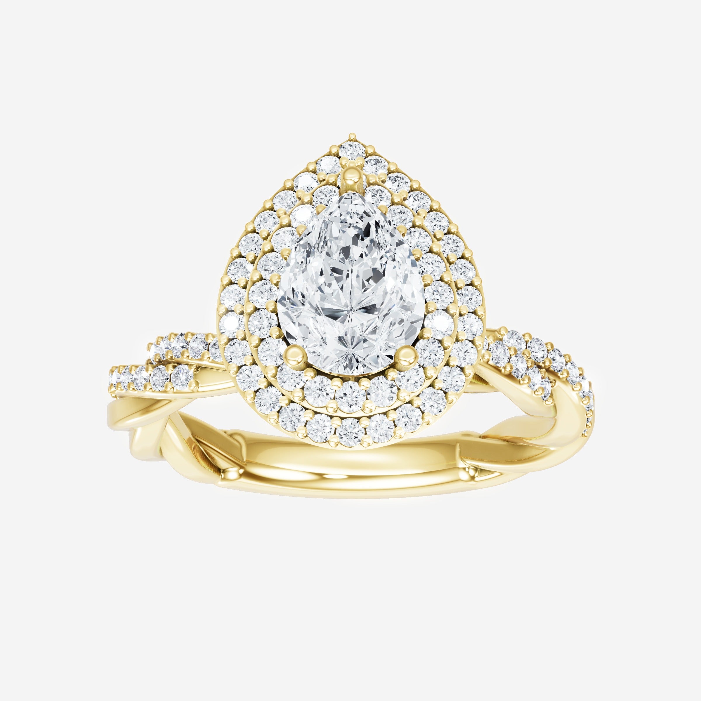 You’ve designed a ring that reflects lasting elegance and grace! Crafted from 14k Yellow Gold, this exquisite Pear lab-grown diamond is the centerpiece of this unique design. This Rope Diamond Shank with a Double Halo head showcases the brilliance of the Pear diamond, creating a timeless look. Ideal for those who seek both beauty and meaning, this ring will stand as a testament to cherished memories.