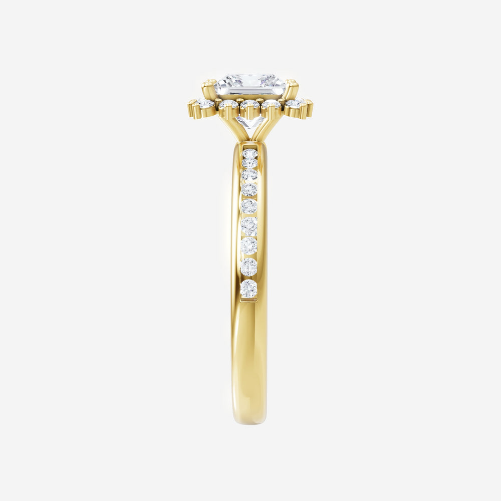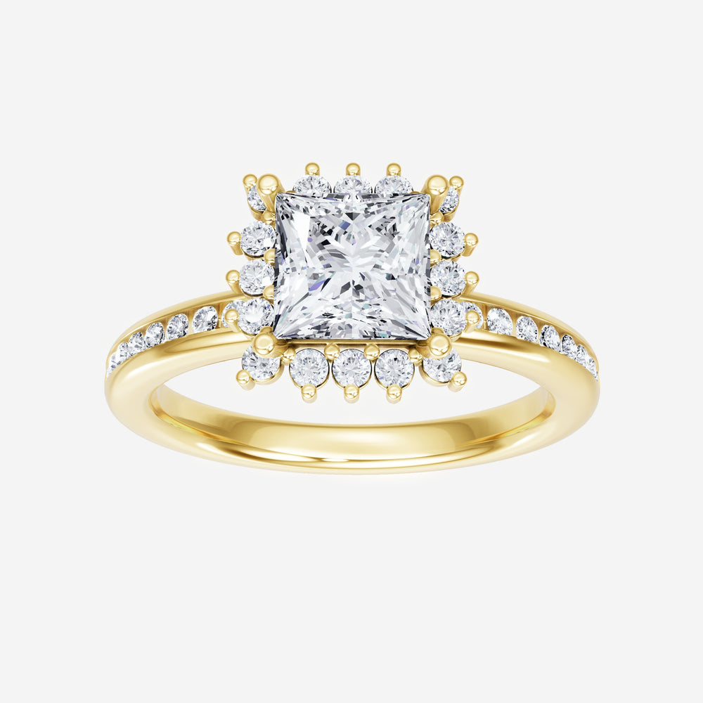 You’ve designed a ring that reflects lasting elegance and grace! Crafted from 14k Yellow Gold, this exquisite Princess lab-grown diamond is the centerpiece of this unique design. This Channel Set Shank with a Diana Halo head showcases the brilliance of the Princess diamond, creating a timeless look. Whether as a gift or a personal treasure, this ring will forever symbolize the most meaningful moments in life.