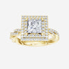 You’ve designed a ring that reflects lasting elegance and grace! Crafted from 14k Yellow Gold, this exquisite Princess lab-grown diamond is the centerpiece of this unique design. This Rope Diamond Shank with a Double Halo head showcases the brilliance of the Princess diamond, creating a timeless look. This elegant piece is the perfect symbol of love, strength, and timeless beauty.