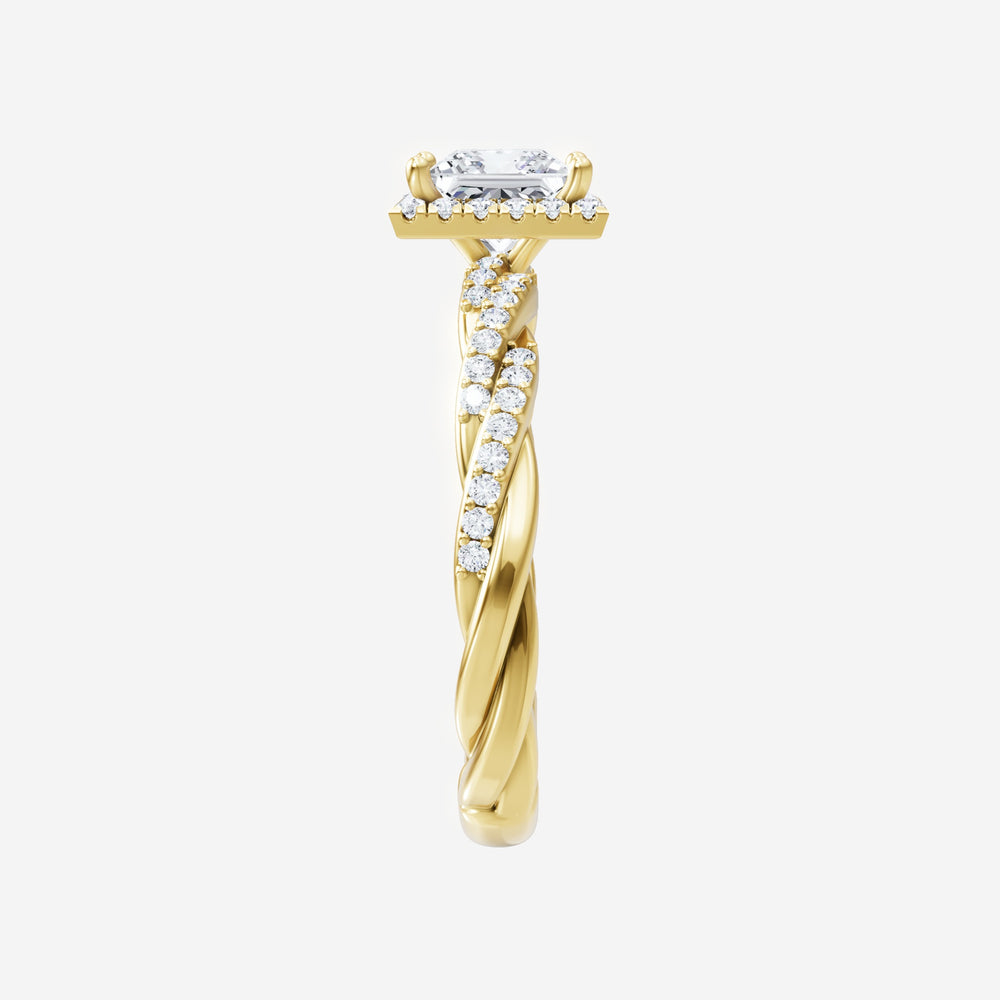 You’ve designed a ring that reflects lasting elegance and grace! Crafted from 14k Yellow Gold, this exquisite Princess lab-grown diamond is the centerpiece of this unique design. This Rope Diamond Shank with a Micro Halo head showcases the brilliance of the Princess diamond, creating a timeless look. This stunning ring makes the perfect symbol of everlasting love and devotion.