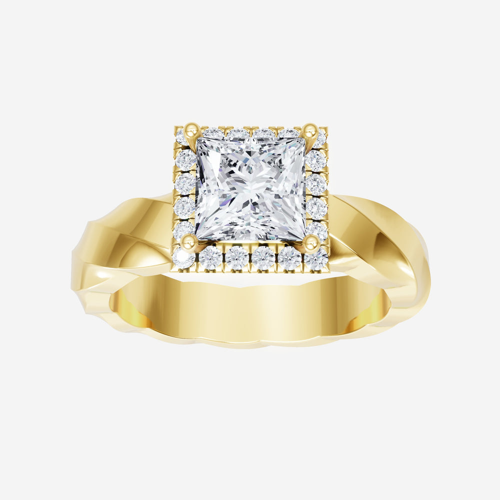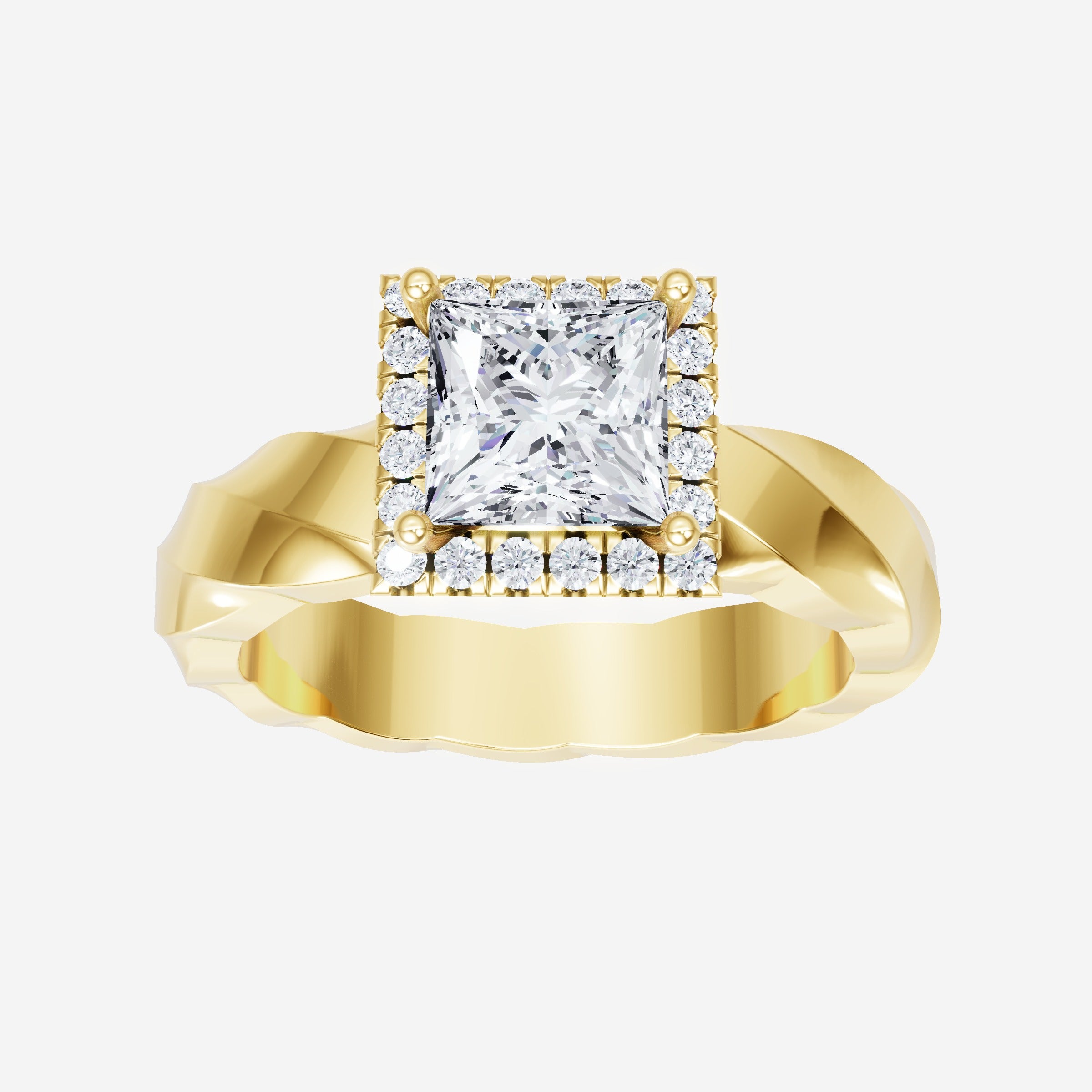 You’ve designed a ring that reflects lasting elegance and grace! Crafted from 14k Yellow Gold, this exquisite Princess lab-grown diamond is the centerpiece of this unique design. This Twisted Shank with a Micro Halo head showcases the brilliance of the Princess diamond, creating a timeless look. It's a piece of elegance and beauty, perfect for marking life's most beautiful occasions.