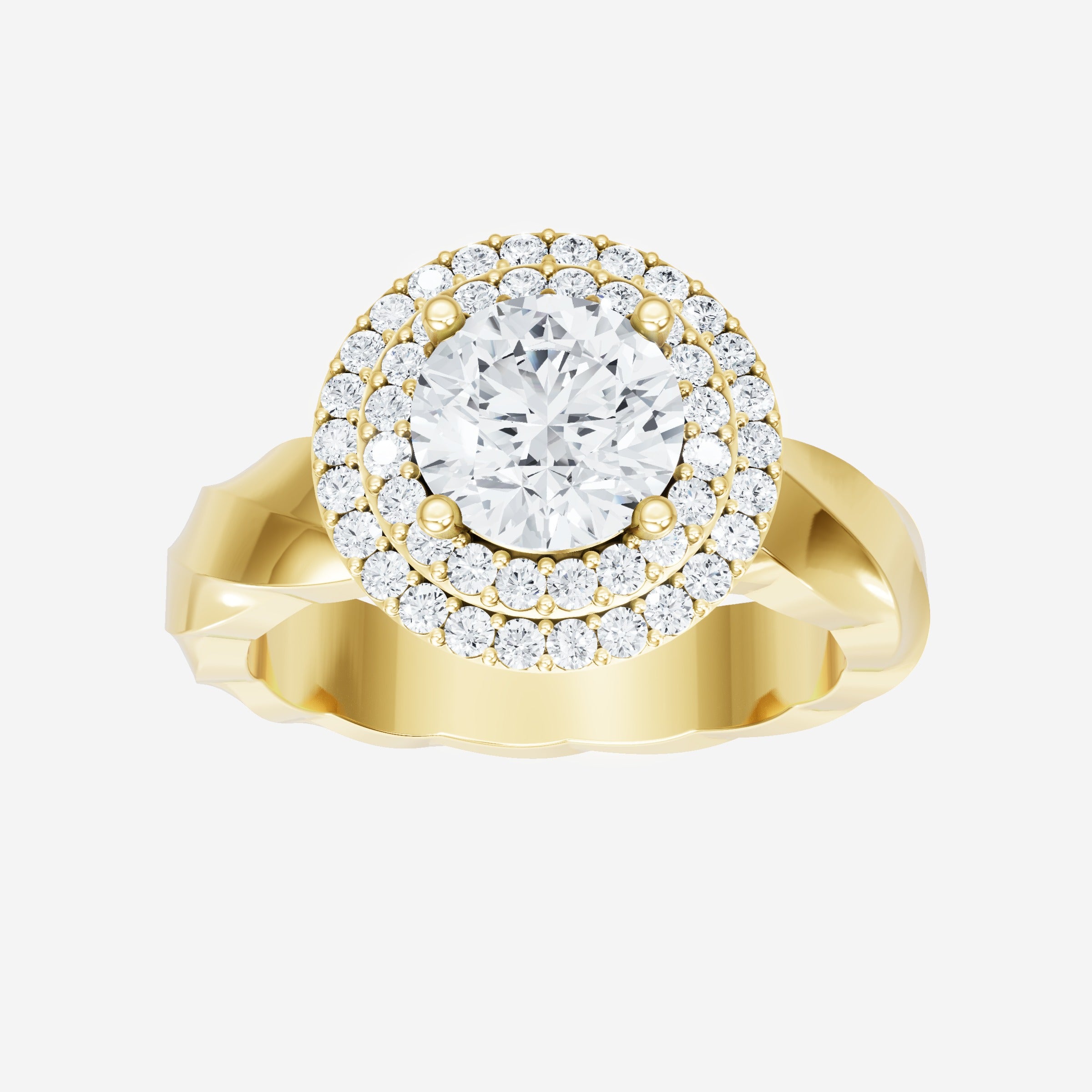 You’ve designed a ring that reflects lasting elegance and grace! Crafted from 14k Yellow Gold, this exquisite Round lab-grown diamond is the centerpiece of this unique design. This Twisted Shank with a Double Halo head showcases the brilliance of the Round diamond, creating a timeless look. This ring will become a cherished reminder of life's most treasured moments.
