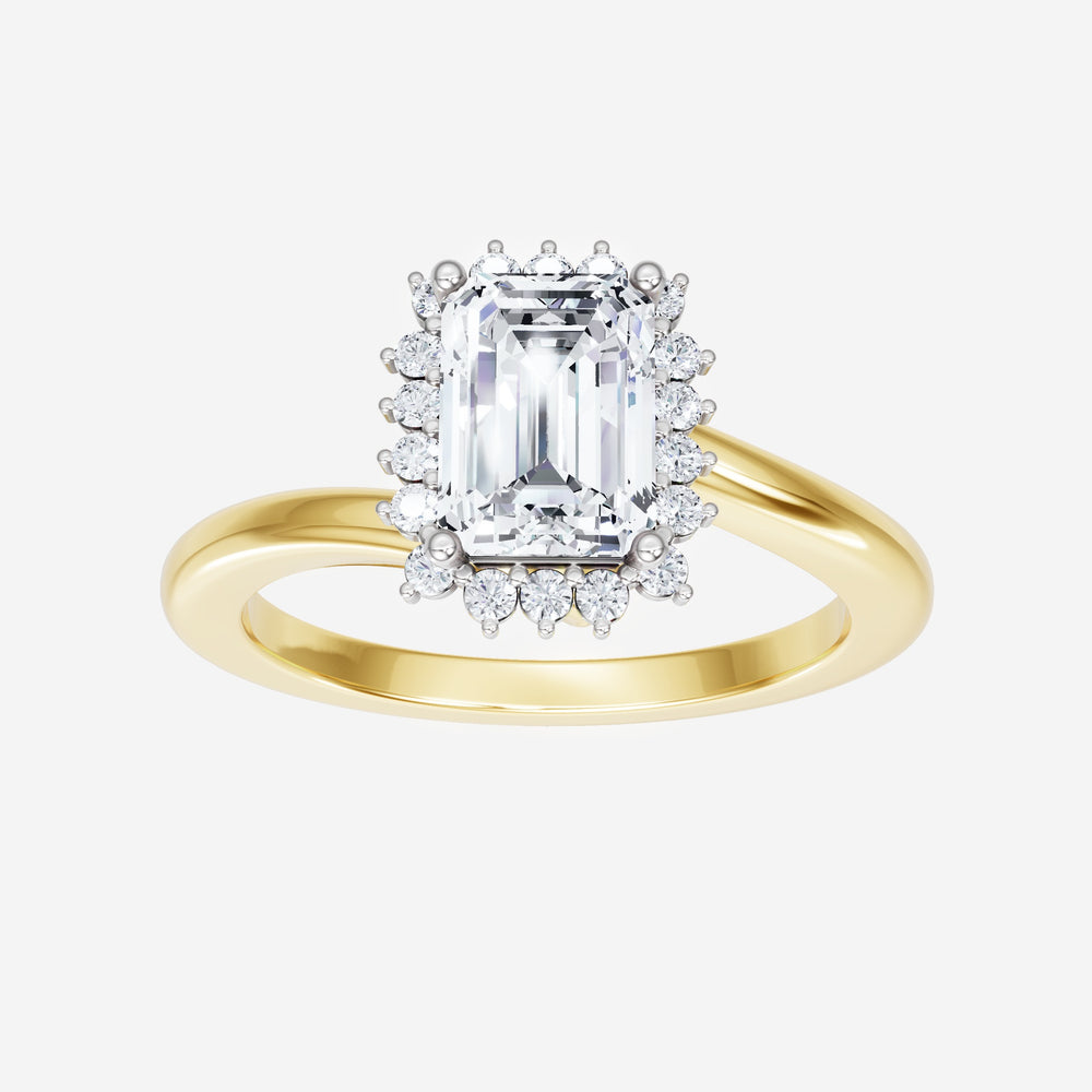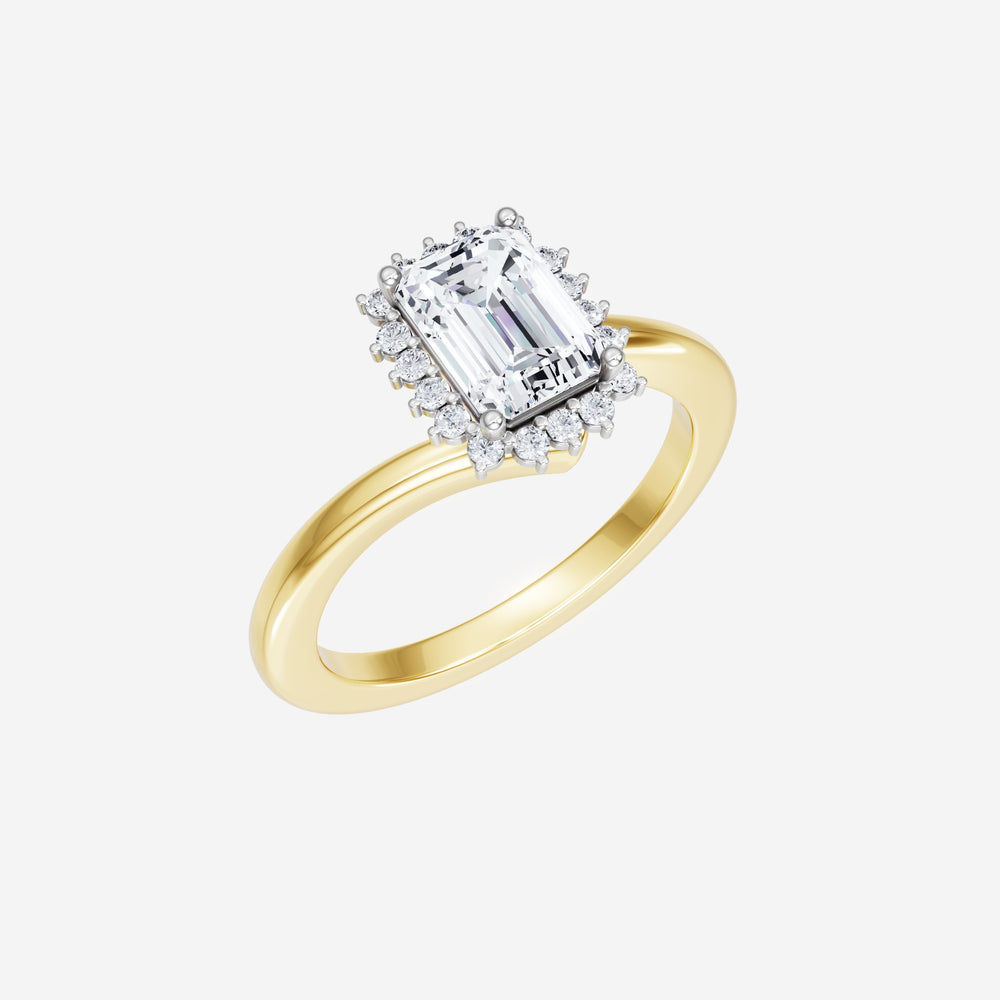 You’ve designed a ring that reflects lasting elegance and grace! Crafted from 14k Yellow White Dual Tone, this exquisite Emerald lab-grown diamond is the centerpiece of this unique design. This Bypass Shank with a Diana Halo head showcases the brilliance of the Emerald diamond, creating a timeless look. It's a piece of elegance and beauty, perfect for marking life's most beautiful occasions.