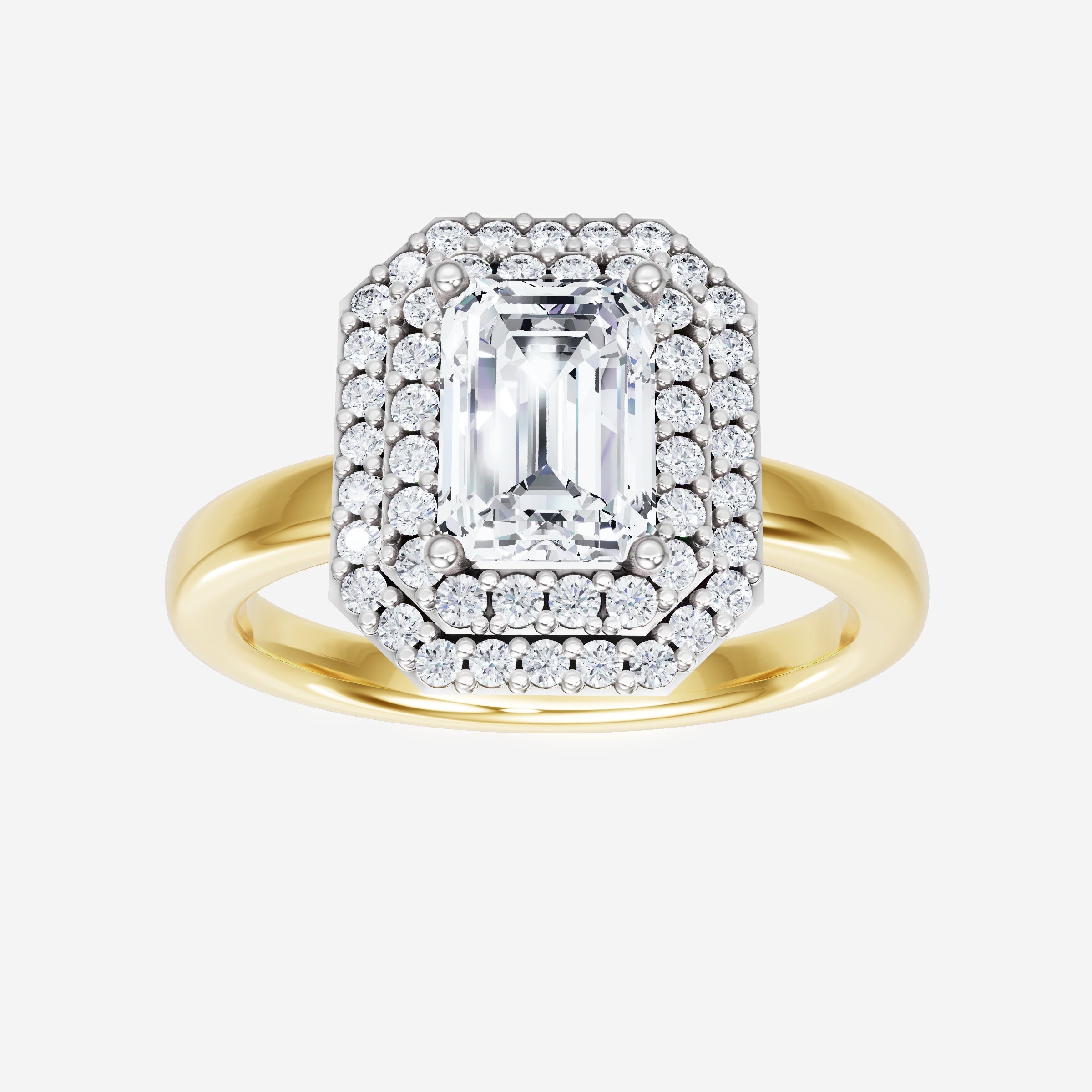 You’ve designed a ring that reflects lasting elegance and grace! Crafted from 14k Yellow White Dual Tone, this exquisite Emerald lab-grown diamond is the centerpiece of this unique design. This Basic Plain Shank with a Double Halo head showcases the brilliance of the Emerald diamond, creating a timeless look. With this ring, celebrate every moment of joy, success, and love.