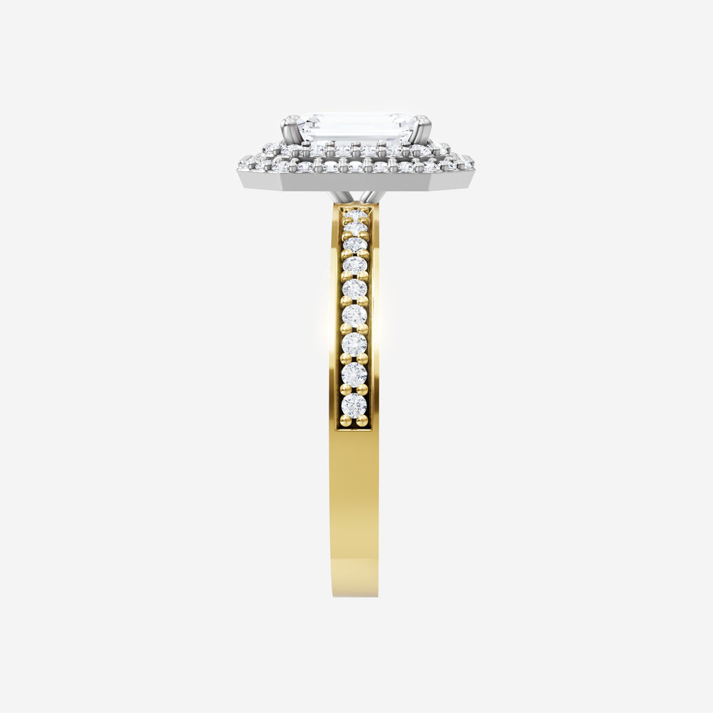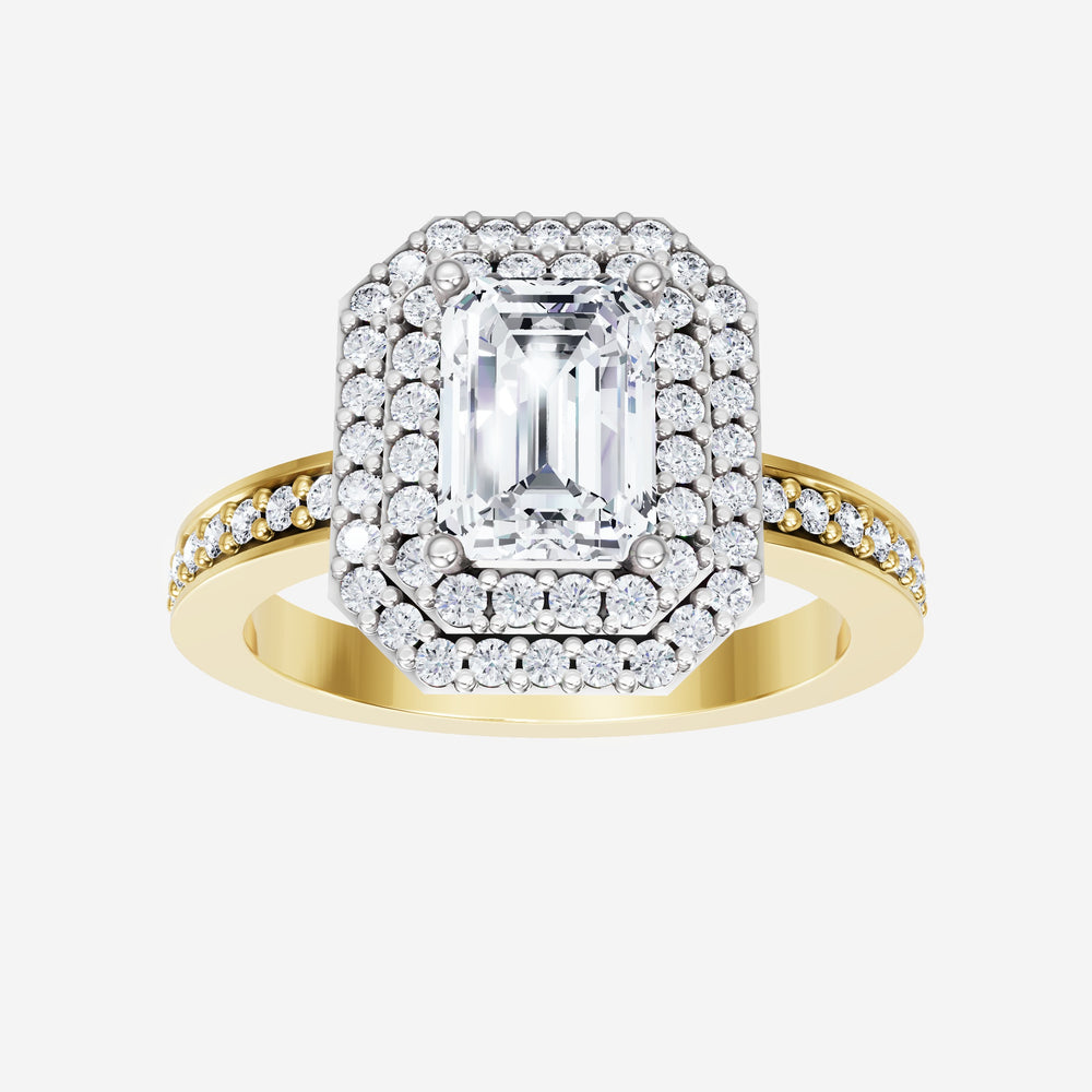 You’ve designed a ring that reflects lasting elegance and grace! Crafted from 14k Yellow White Dual Tone, this exquisite Emerald lab-grown diamond is the centerpiece of this unique design. This Single Pave Shank with a Double Halo head showcases the brilliance of the Emerald diamond, creating a timeless look. With this ring, celebrate every moment of joy, success, and love.