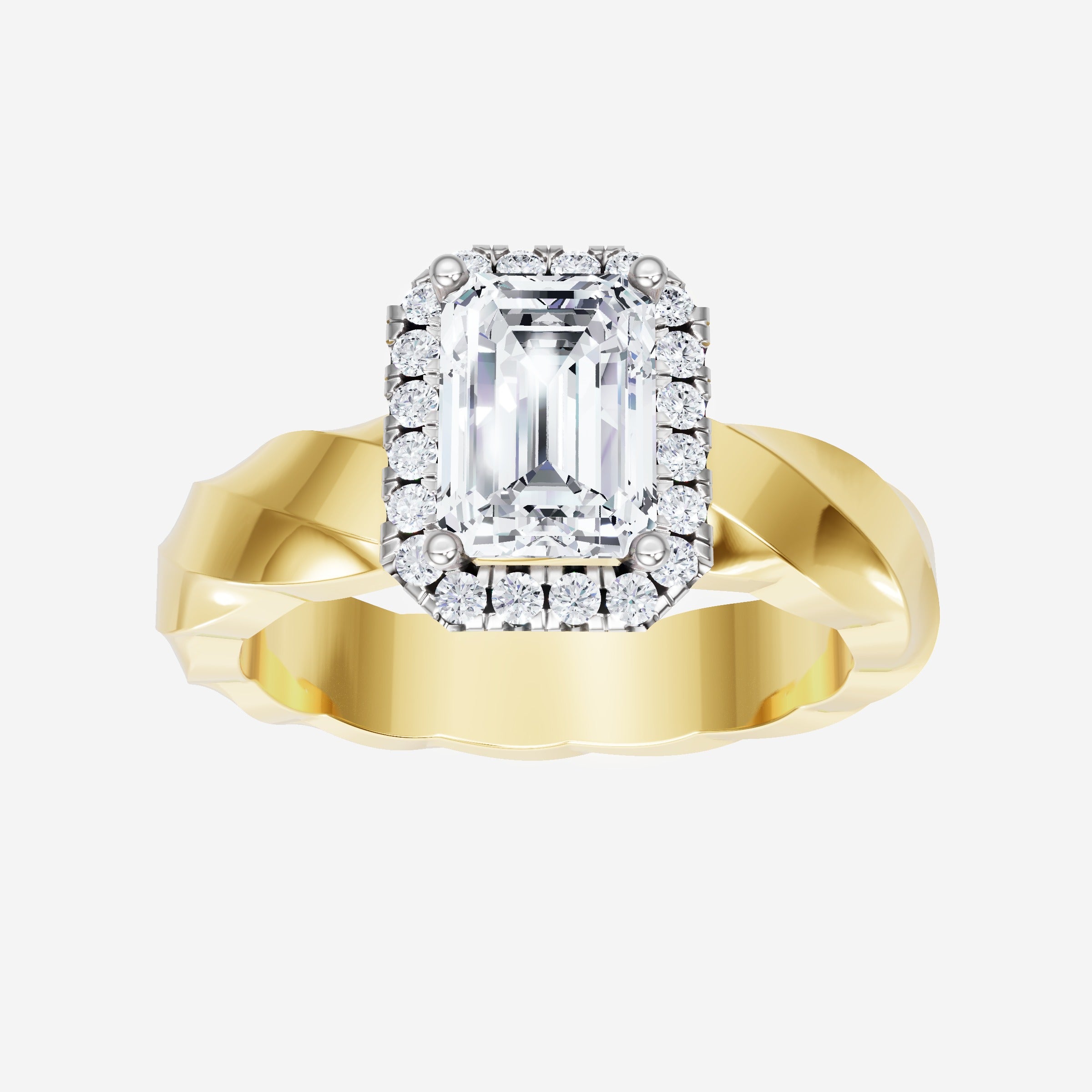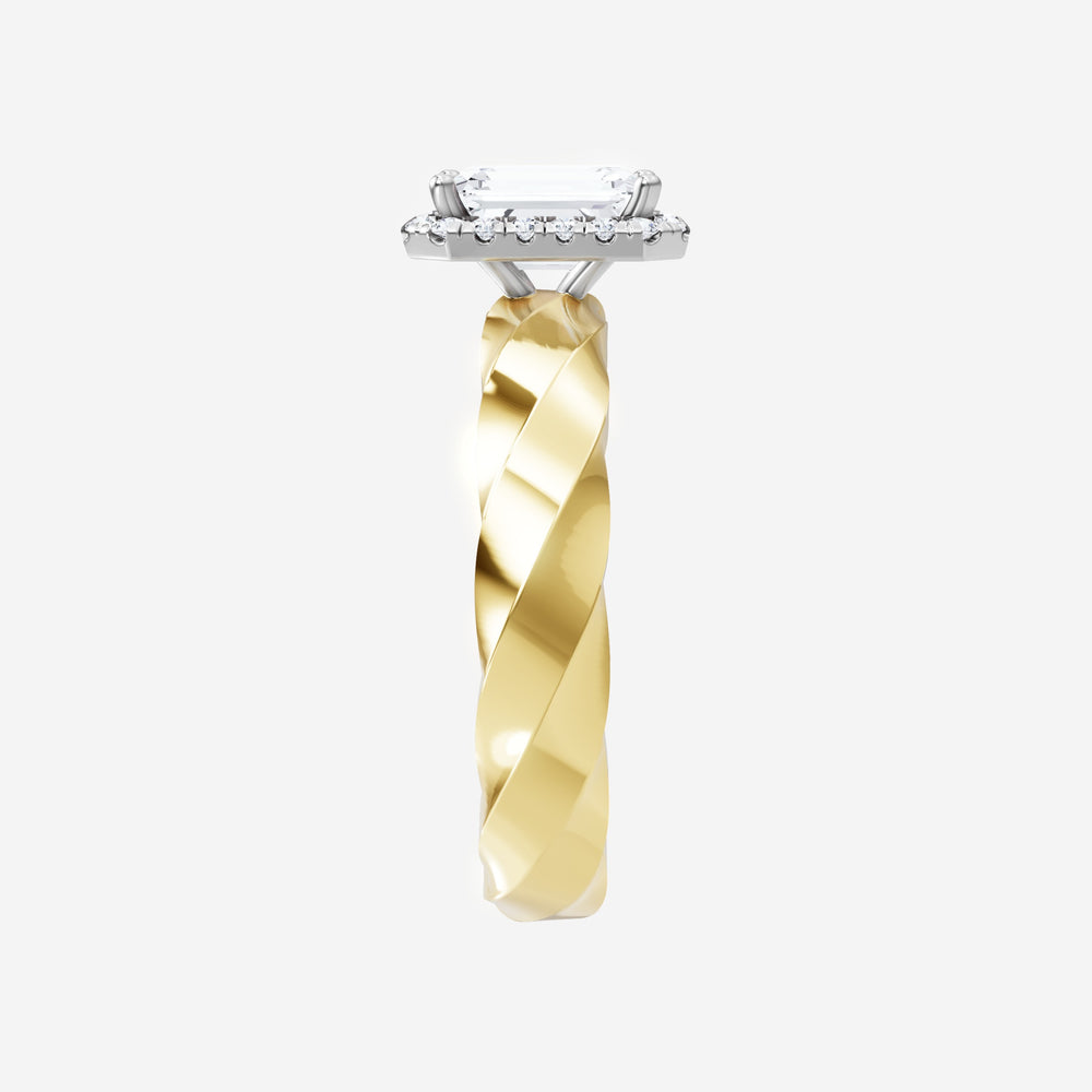 You’ve designed a ring that reflects lasting elegance and grace! Crafted from 14k Yellow White Dual Tone, this exquisite Emerald lab-grown diamond is the centerpiece of this unique design. This Twisted Shank with a Micro Halo head showcases the brilliance of the Emerald diamond, creating a timeless look. This stunning ring makes the perfect symbol of everlasting love and devotion.