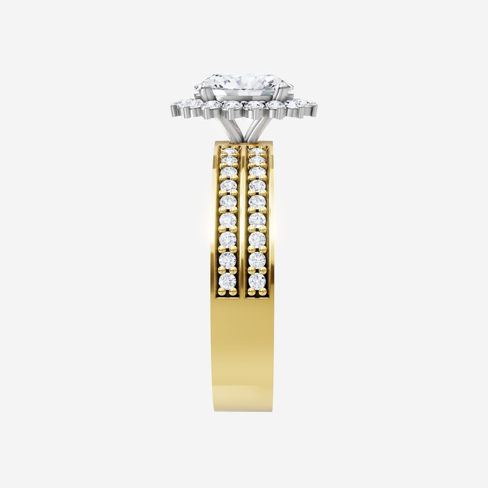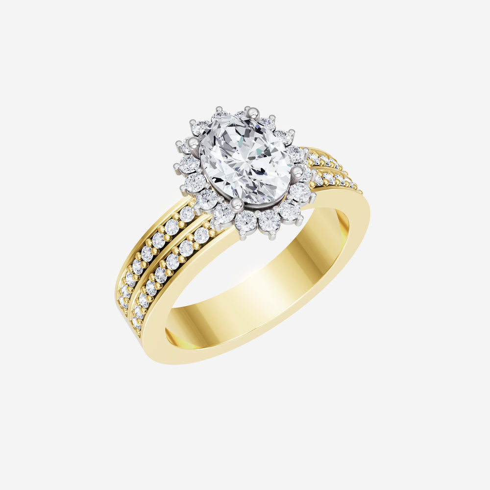 You’ve designed a ring that reflects lasting elegance and grace! Crafted from 14k Yellow White Dual Tone, this exquisite Oval lab-grown diamond is the centerpiece of this unique design. This Double Row Pave with a Diana Halo head showcases the brilliance of the Oval diamond, creating a timeless look. Whether as a gift or a personal treasure, this ring will forever symbolize the most meaningful moments in life.