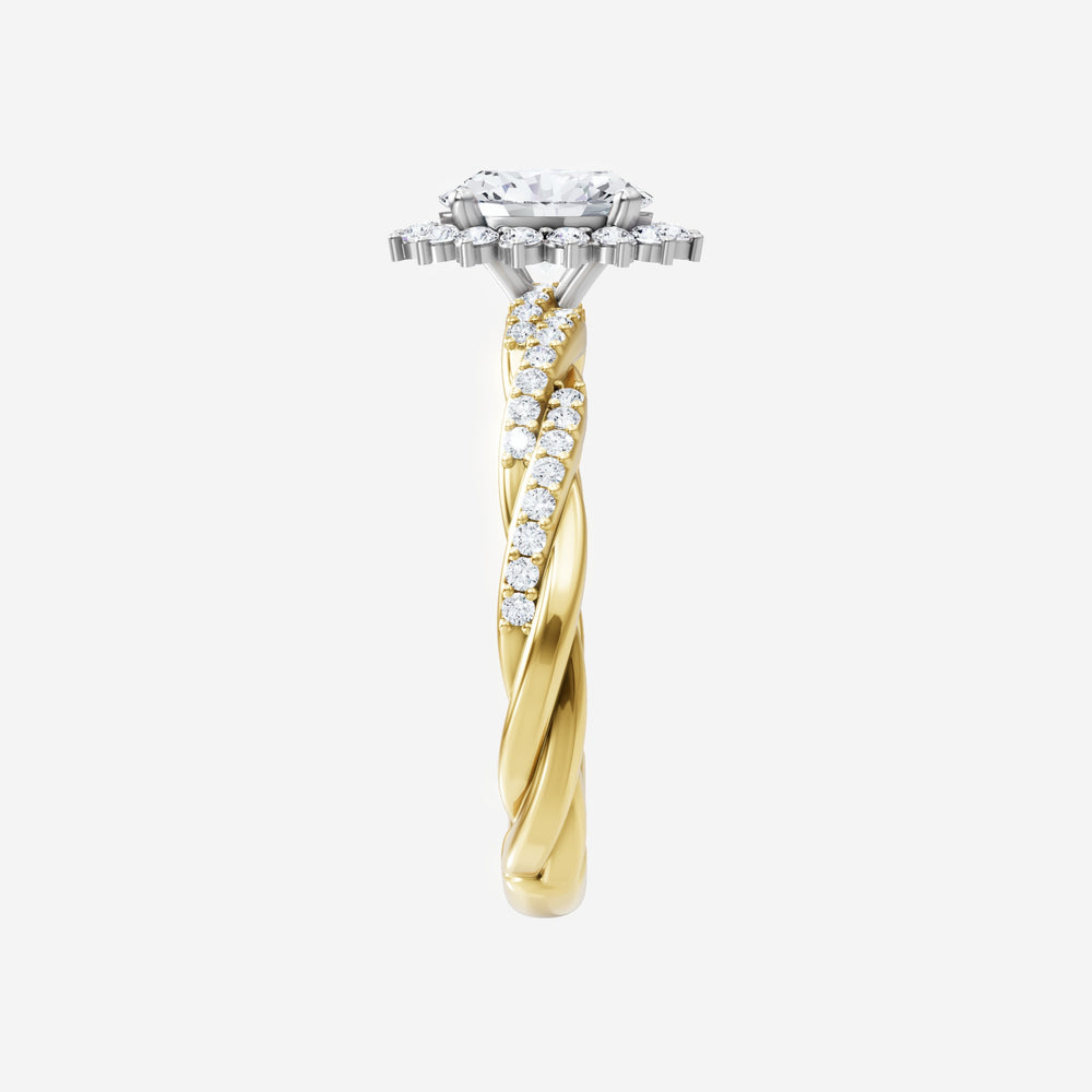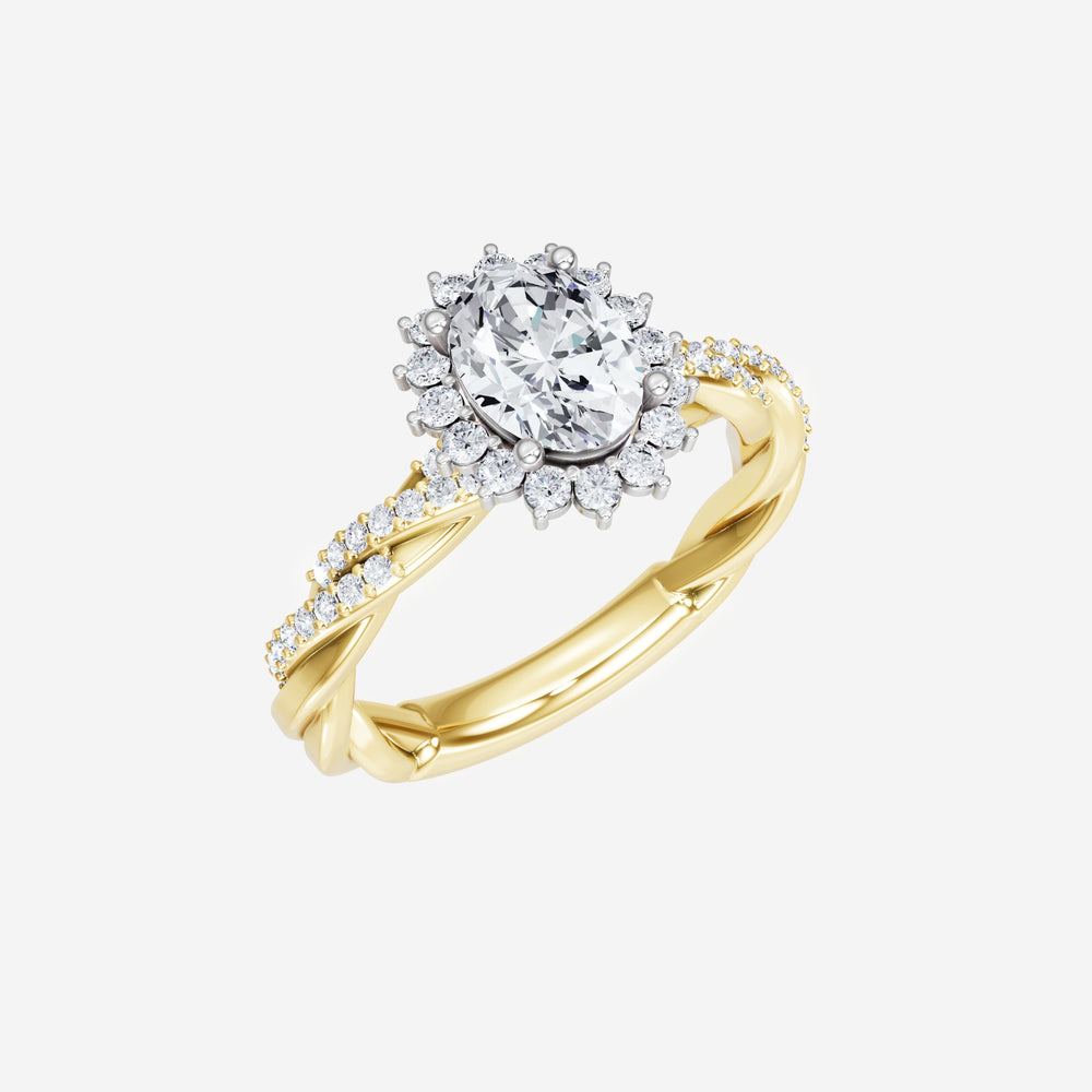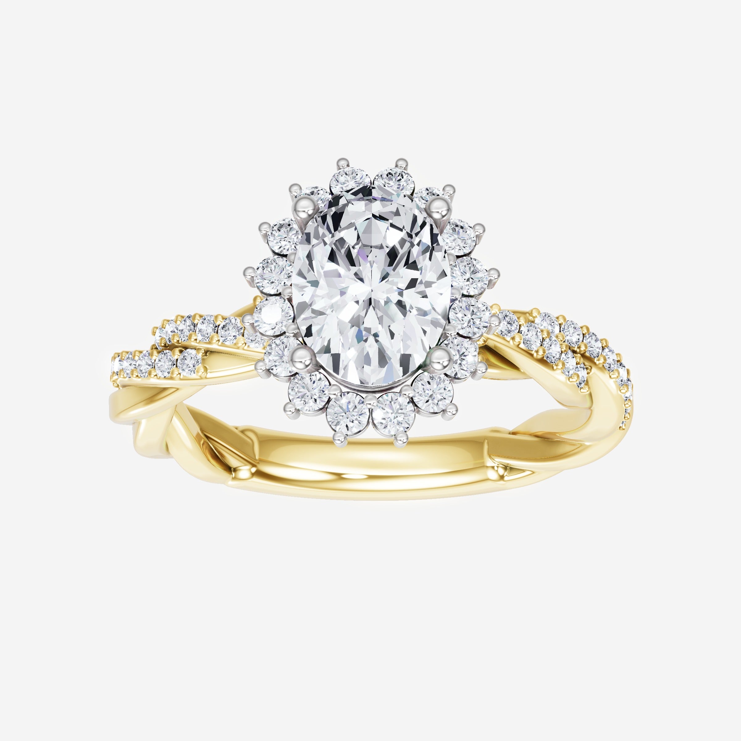 You’ve designed a ring that reflects lasting elegance and grace! Crafted from 14k Yellow White Dual Tone, this exquisite Oval lab-grown diamond is the centerpiece of this unique design. This Rope Diamond Shank with a Diana Halo head showcases the brilliance of the Oval diamond, creating a timeless look. This ring will become a cherished reminder of life's most treasured moments.