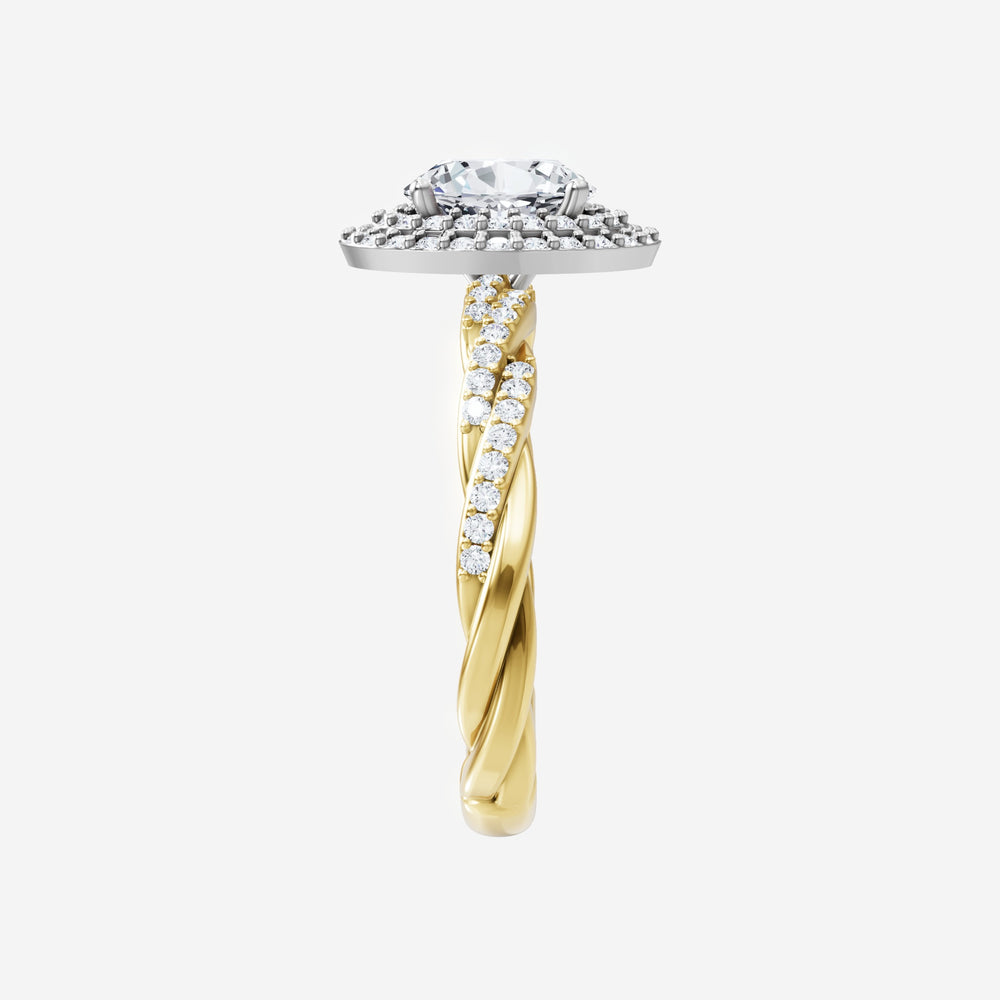 You’ve designed a ring that reflects lasting elegance and grace! Crafted from 14k Yellow White Dual Tone, this exquisite Oval lab-grown diamond is the centerpiece of this unique design. This Rope Diamond Shank with a Double Halo head showcases the brilliance of the Oval diamond, creating a timeless look. It's a piece of elegance and beauty, perfect for marking life's most beautiful occasions.