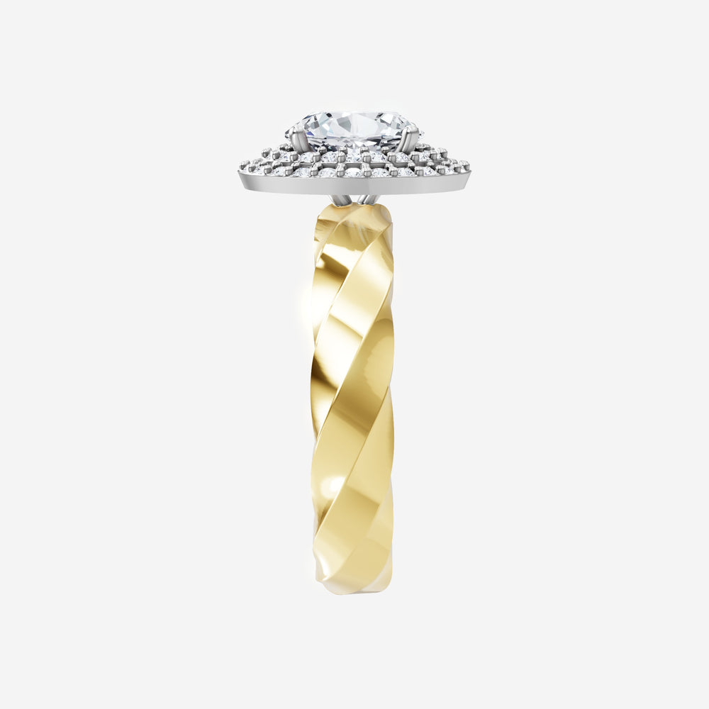 You’ve designed a ring that reflects lasting elegance and grace! Crafted from 14k Yellow White Dual Tone, this exquisite Oval lab-grown diamond is the centerpiece of this unique design. This Twisted Shank with a Double Halo head showcases the brilliance of the Oval diamond, creating a timeless look. Whether as a gift or a personal treasure, this ring will forever symbolize the most meaningful moments in life.