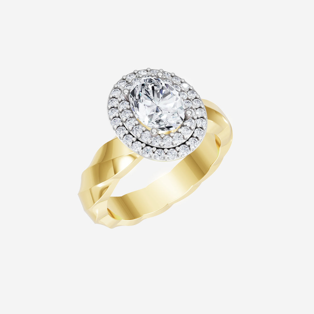 You’ve designed a ring that reflects lasting elegance and grace! Crafted from 14k Yellow White Dual Tone, this exquisite Oval lab-grown diamond is the centerpiece of this unique design. This Twisted Shank with a Double Halo head showcases the brilliance of the Oval diamond, creating a timeless look. Ideal for those who seek both beauty and meaning, this ring will stand as a testament to cherished memories.