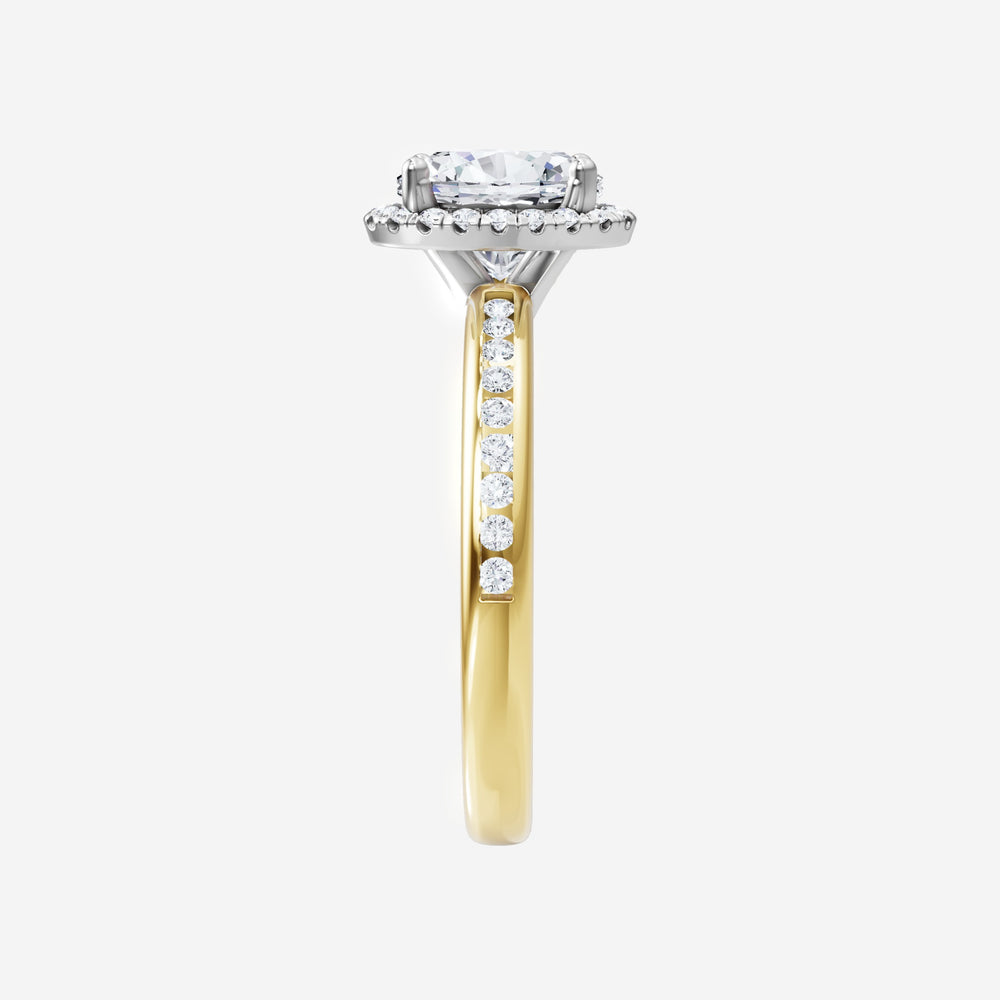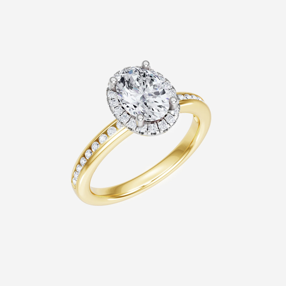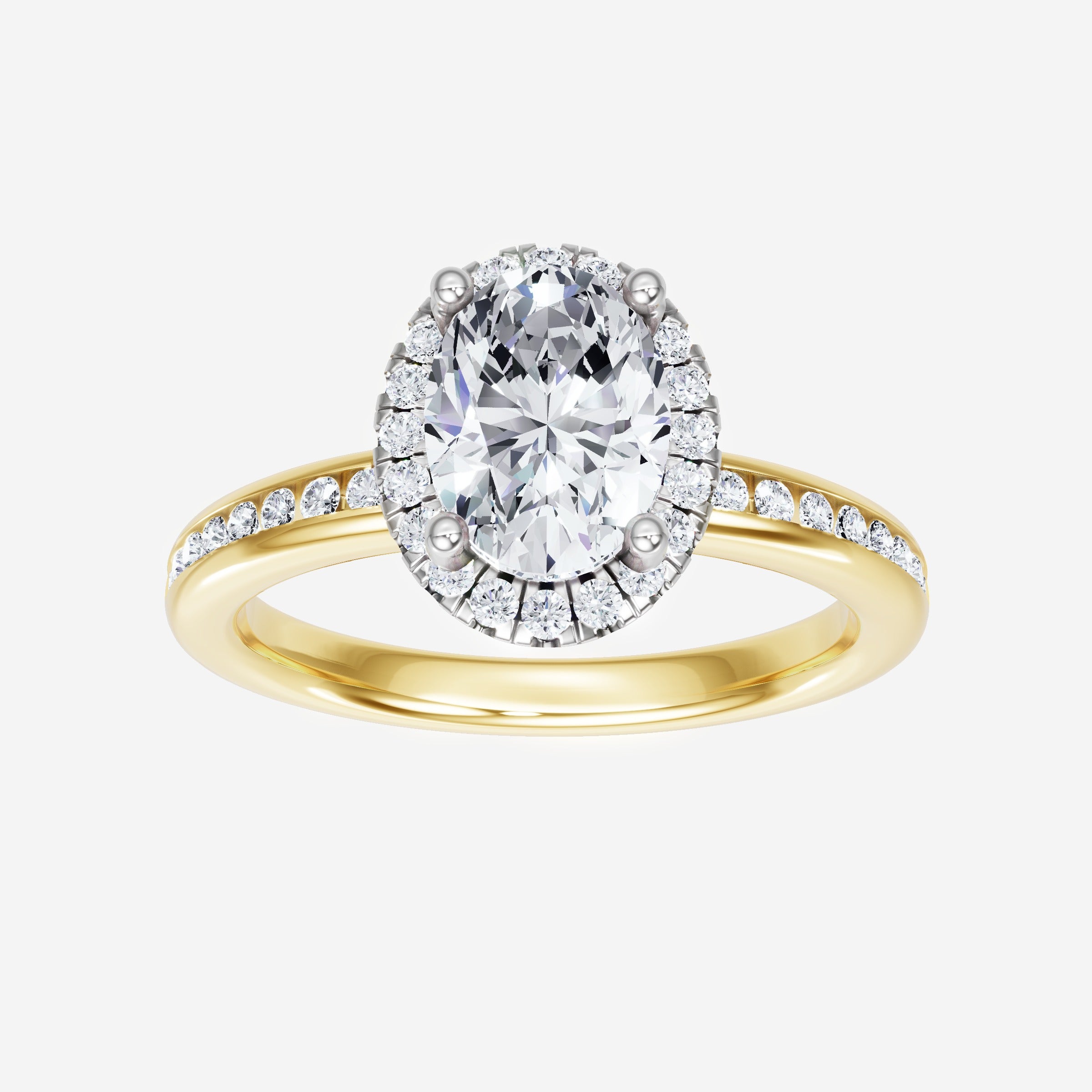 You’ve designed a ring that reflects lasting elegance and grace! Crafted from 14k Yellow White Dual Tone, this exquisite Oval lab-grown diamond is the centerpiece of this unique design. This Channel Set Shank with a Micro Halo head showcases the brilliance of the Oval diamond, creating a timeless look. This elegant piece is the perfect symbol of love, strength, and timeless beauty.
