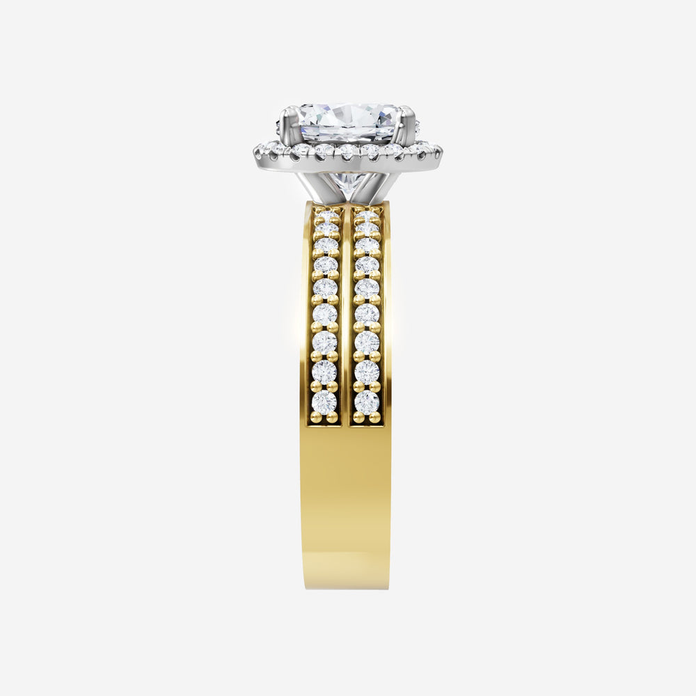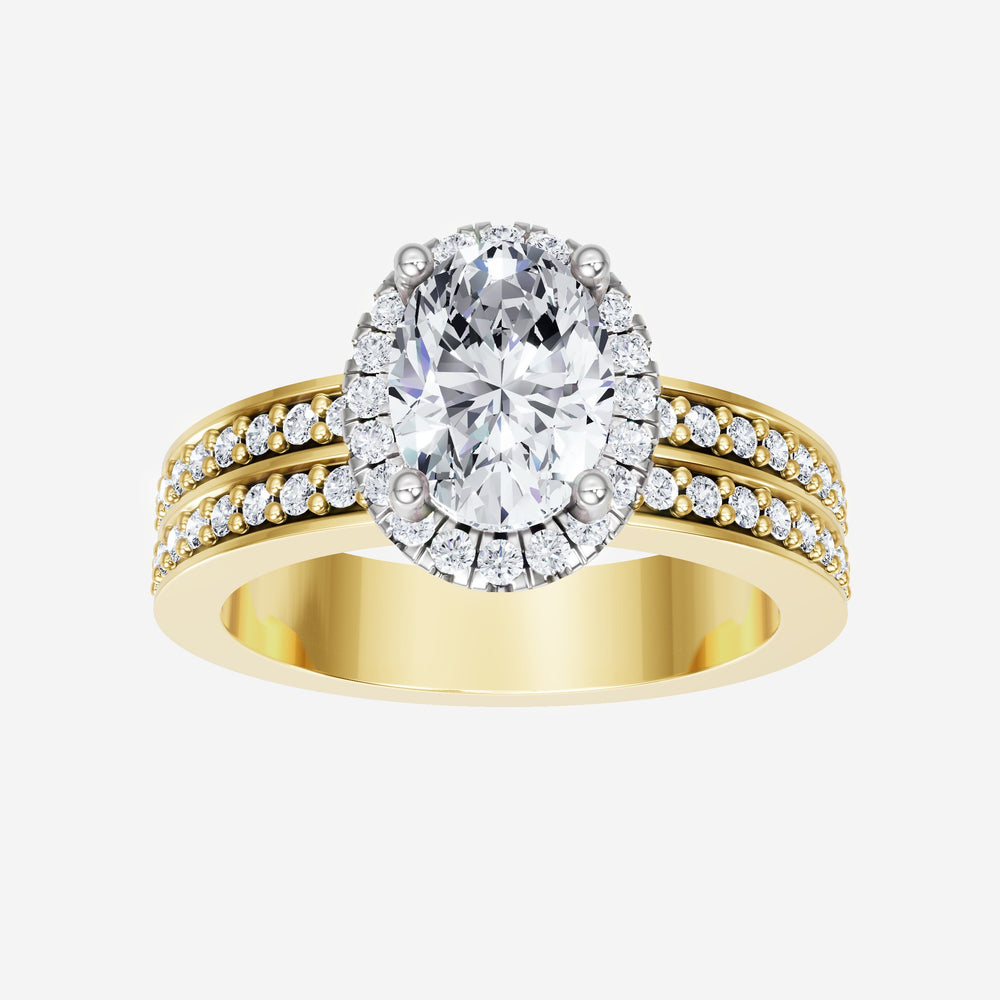 You’ve designed a ring that reflects lasting elegance and grace! Crafted from 14k Yellow White Dual Tone, this exquisite Oval lab-grown diamond is the centerpiece of this unique design. This Double Row Pave with a Micro Halo head showcases the brilliance of the Oval diamond, creating a timeless look. It's a piece of elegance and beauty, perfect for marking life's most beautiful occasions.