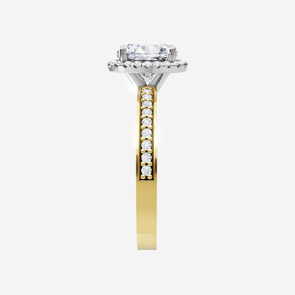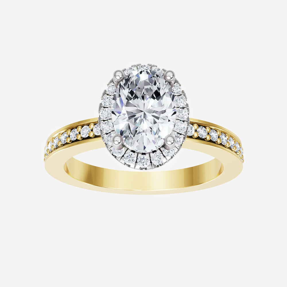 You’ve designed a ring that reflects lasting elegance and grace! Crafted from 14k Yellow White Dual Tone, this exquisite Oval lab-grown diamond is the centerpiece of this unique design. This Single Pave Shank with a Micro Halo head showcases the brilliance of the Oval diamond, creating a timeless look. It's a piece of elegance and beauty, perfect for marking life's most beautiful occasions.