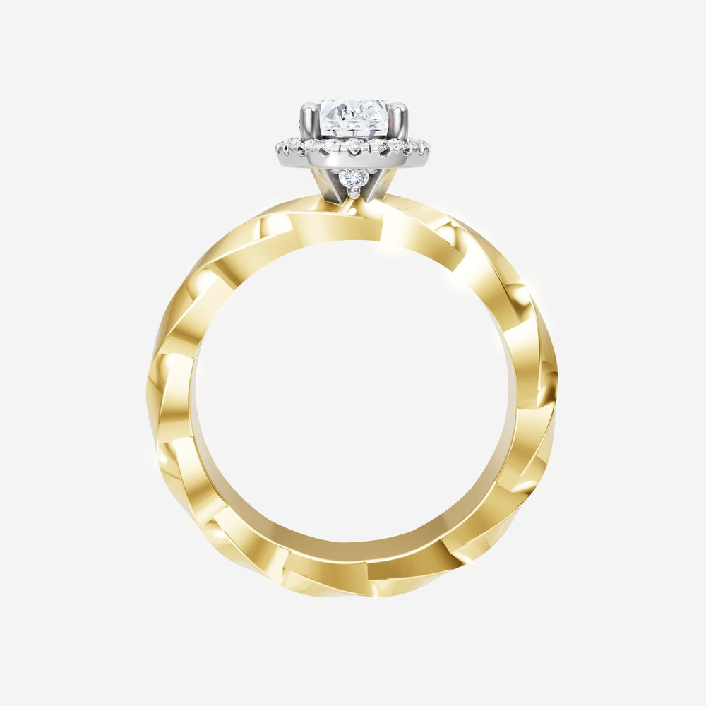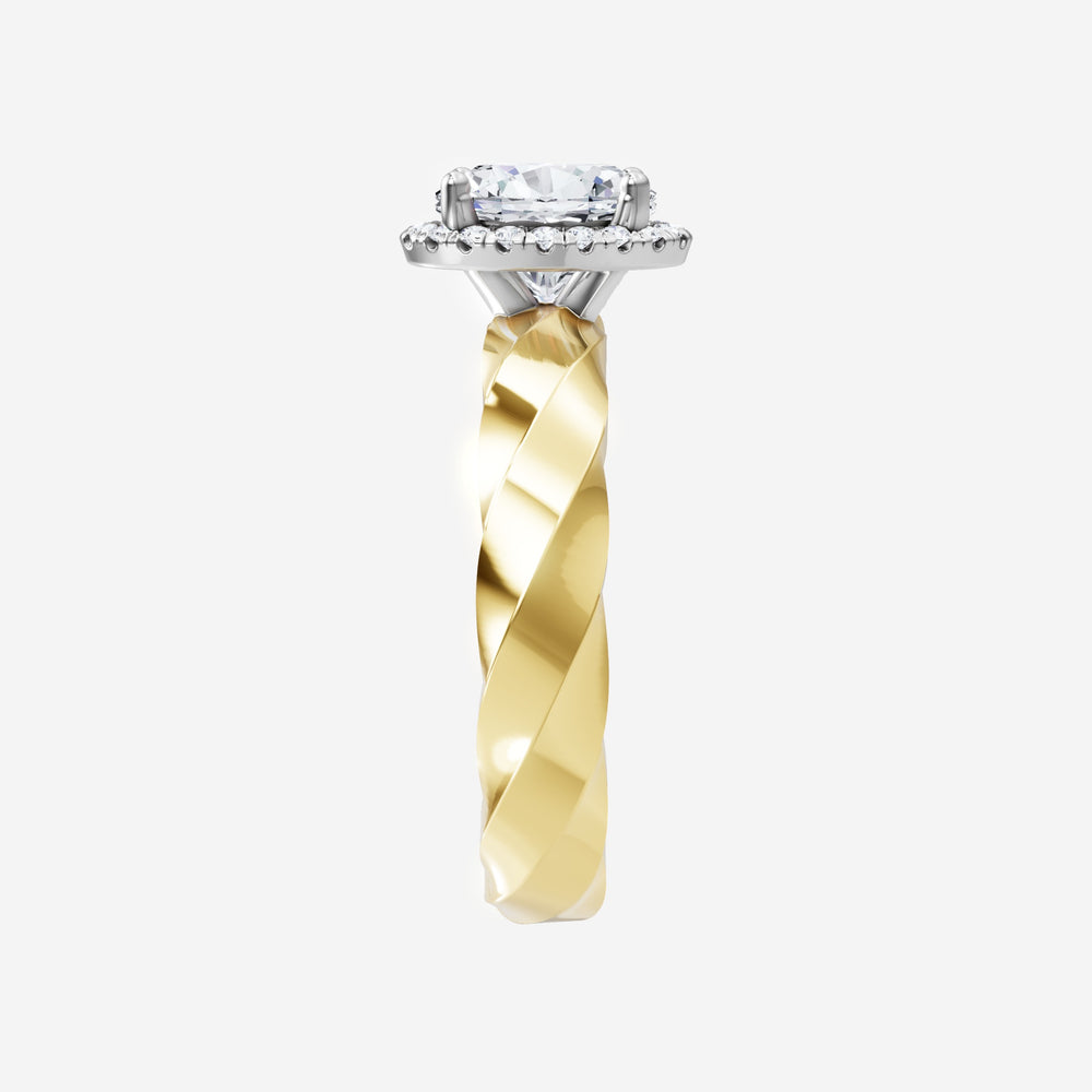You’ve designed a ring that reflects lasting elegance and grace! Crafted from 14k Yellow White Dual Tone, this exquisite Oval lab-grown diamond is the centerpiece of this unique design. This Twisted Shank with a Micro Halo head showcases the brilliance of the Oval diamond, creating a timeless look. With this ring, celebrate every moment of joy, success, and love.