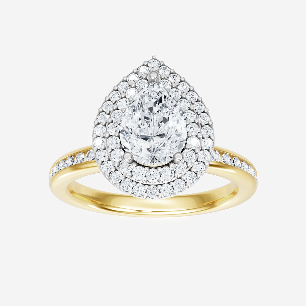You’ve designed a ring that reflects lasting elegance and grace! Crafted from 14k Yellow White Dual Tone, this exquisite Pear lab-grown diamond is the centerpiece of this unique design. This Channel Set Shank with a Double Halo head showcases the brilliance of the Pear diamond, creating a timeless look. With this ring, celebrate every moment of joy, success, and love.