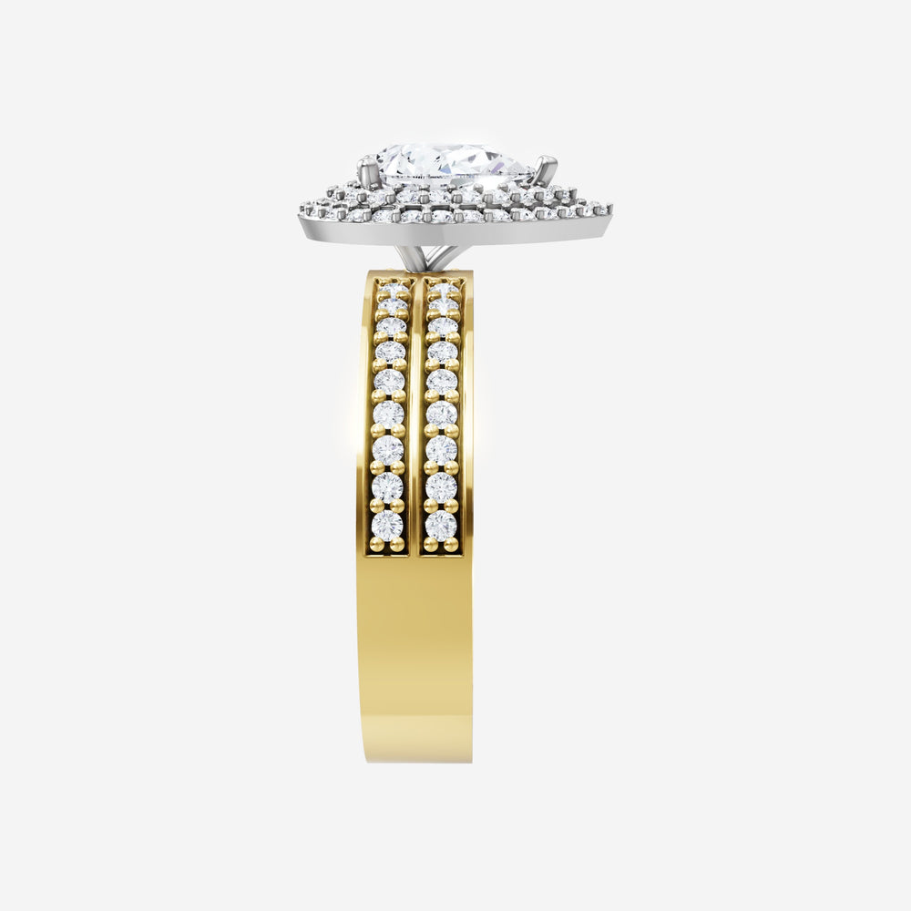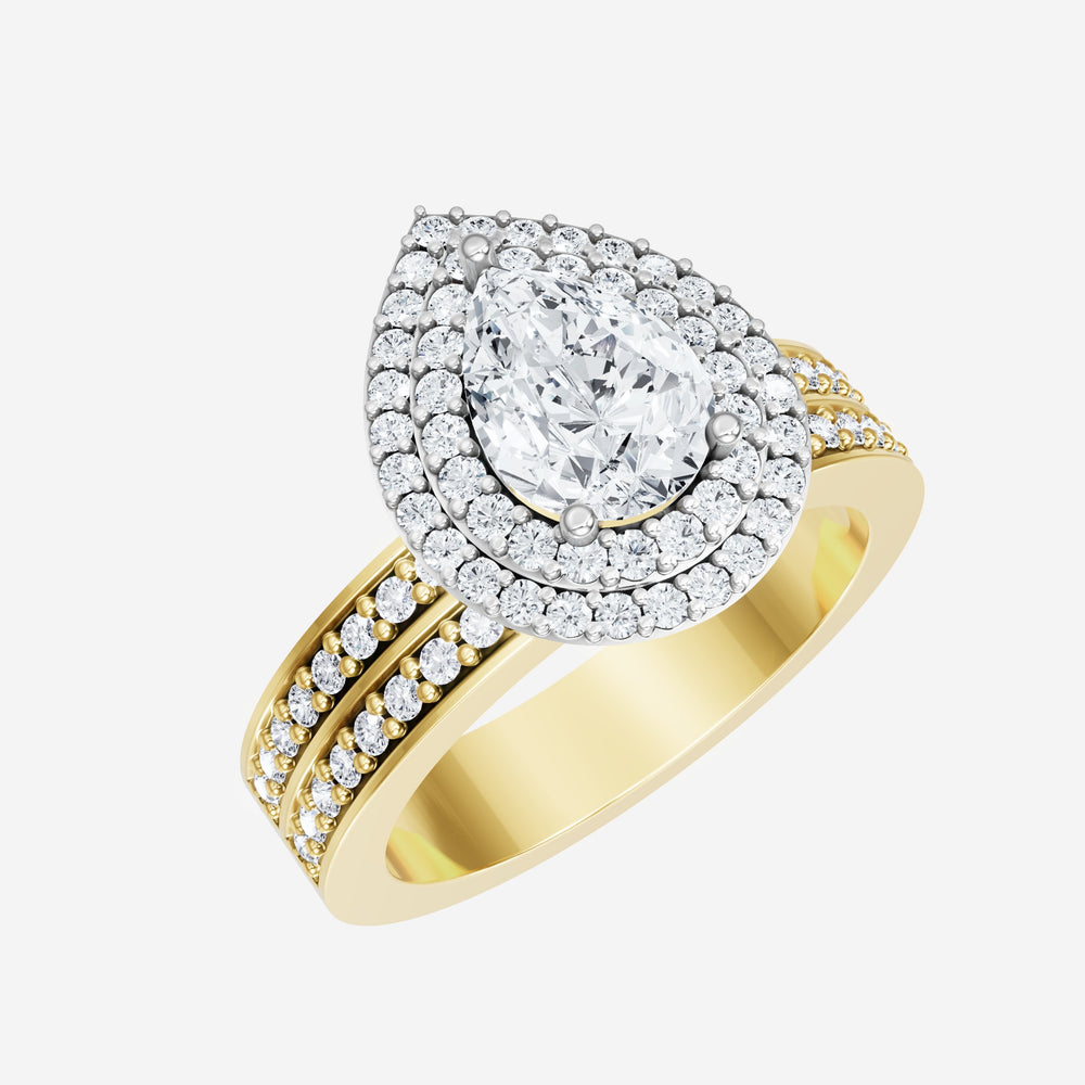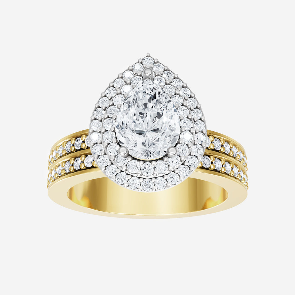 You’ve designed a ring that reflects lasting elegance and grace! Crafted from 14k Yellow White Dual Tone, this exquisite Pear lab-grown diamond is the centerpiece of this unique design. This Double Row Pave with a Double Halo head showcases the brilliance of the Pear diamond, creating a timeless look. With this ring, celebrate every moment of joy, success, and love.