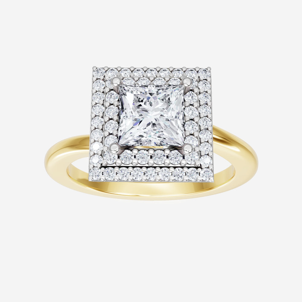 You’ve designed a ring that reflects lasting elegance and grace! Crafted from 14k Yellow White Dual Tone, this exquisite Princess lab-grown diamond is the centerpiece of this unique design. This Bypass Shank with a Double Halo head showcases the brilliance of the Princess diamond, creating a timeless look. This stunning ring makes the perfect symbol of everlasting love and devotion.
