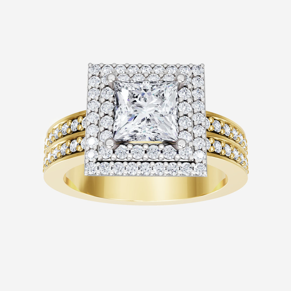 You’ve designed a ring that reflects lasting elegance and grace! Crafted from 14k Yellow White Dual Tone, this exquisite Princess lab-grown diamond is the centerpiece of this unique design. This Double Row Pave with a Double Halo head showcases the brilliance of the Princess diamond, creating a timeless look. With this ring, celebrate every moment of joy, success, and love.
