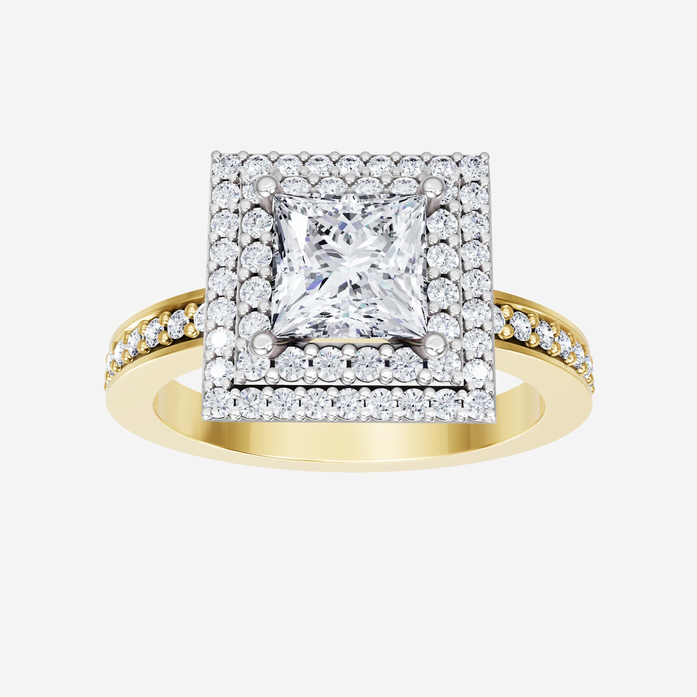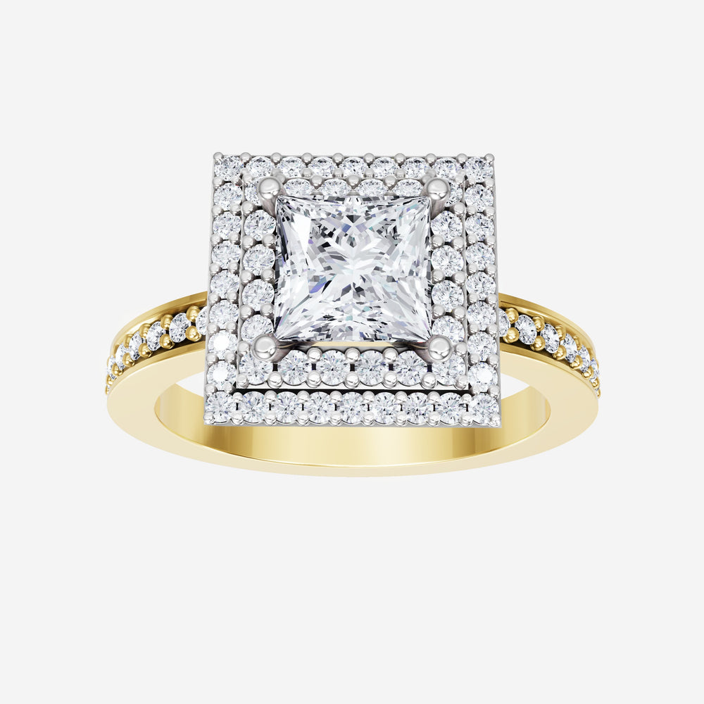You’ve designed a ring that reflects lasting elegance and grace! Crafted from 14k Yellow White Dual Tone, this exquisite Princess lab-grown diamond is the centerpiece of this unique design. This Single Pave Shank with a Double Halo head showcases the brilliance of the Princess diamond, creating a timeless look. This ring will become a cherished reminder of life's most treasured moments.