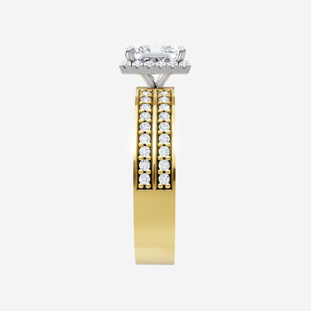 You’ve designed a ring that reflects lasting elegance and grace! Crafted from 14k Yellow White Dual Tone, this exquisite Princess lab-grown diamond is the centerpiece of this unique design. This Double Row Pave with a Micro Halo head showcases the brilliance of the Princess diamond, creating a timeless look. With this ring, celebrate every moment of joy, success, and love.