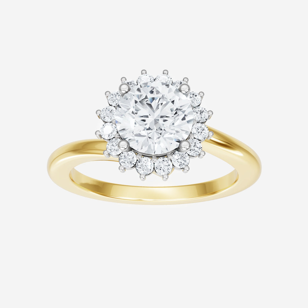 You’ve designed a ring that reflects lasting elegance and grace! Crafted from 14k Yellow White Dual Tone, this exquisite Round lab-grown diamond is the centerpiece of this unique design. This Bypass Shank with a Diana Halo head showcases the brilliance of the Round diamond, creating a timeless look. A perfect choice to celebrate love, commitment, and everything in between.