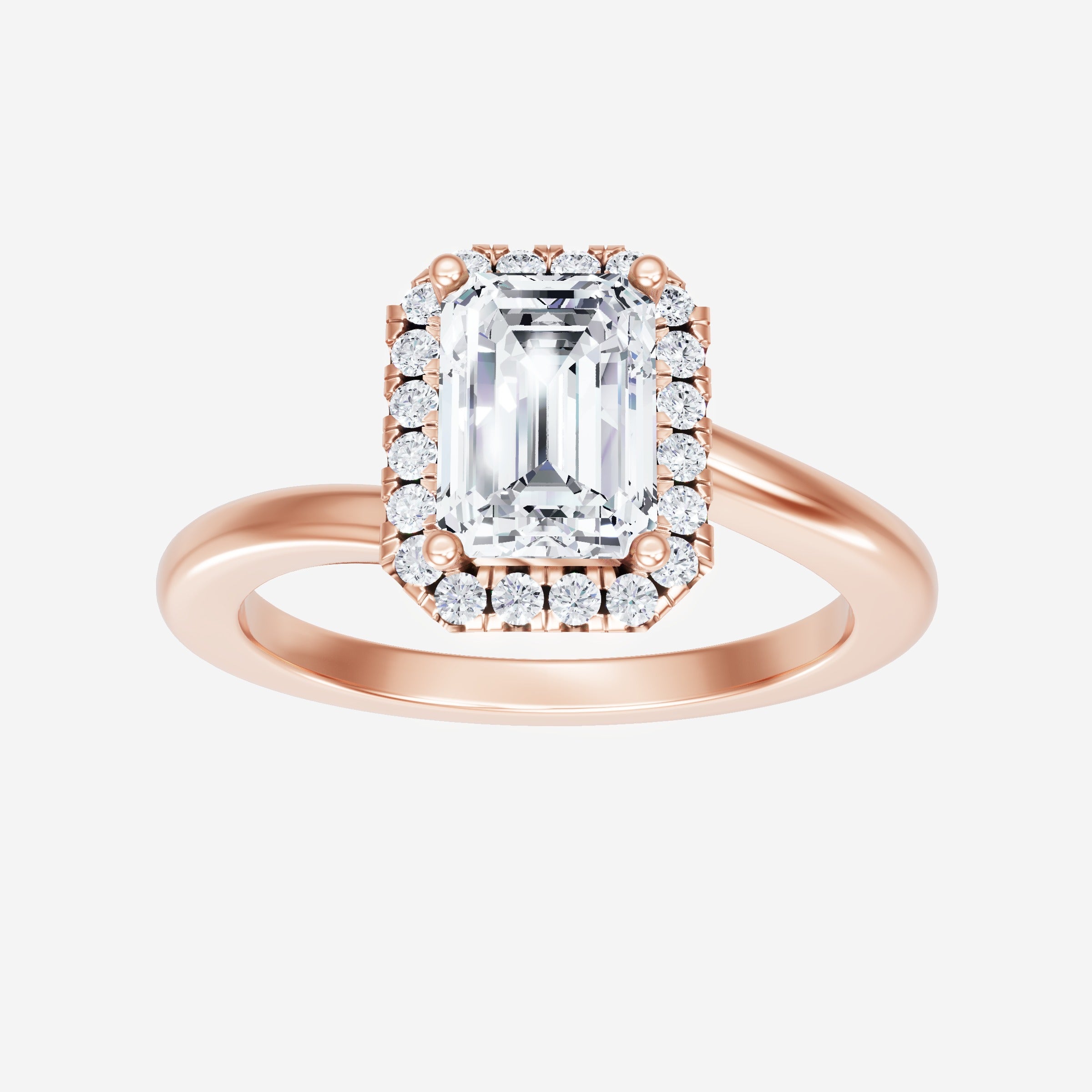You’ve designed a ring that reflects lasting elegance and grace! Crafted from 18k Rose Gold, this exquisite Emerald lab-grown diamond is the centerpiece of this unique design. This Bypass Shank with a Micro Halo head showcases the brilliance of the Emerald diamond, creating a timeless look. With this ring, celebrate every moment of joy, success, and love.