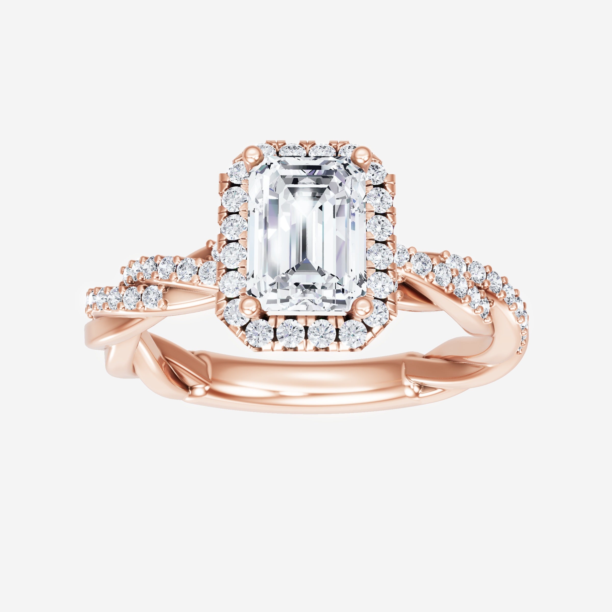 You’ve designed a ring that reflects lasting elegance and grace! Crafted from 18k Rose Gold, this exquisite Emerald lab-grown diamond is the centerpiece of this unique design. This Rope Diamond Shank with a Micro Halo head showcases the brilliance of the Emerald diamond, creating a timeless look. This elegant piece is the perfect symbol of love, strength, and timeless beauty.