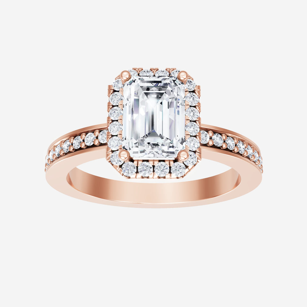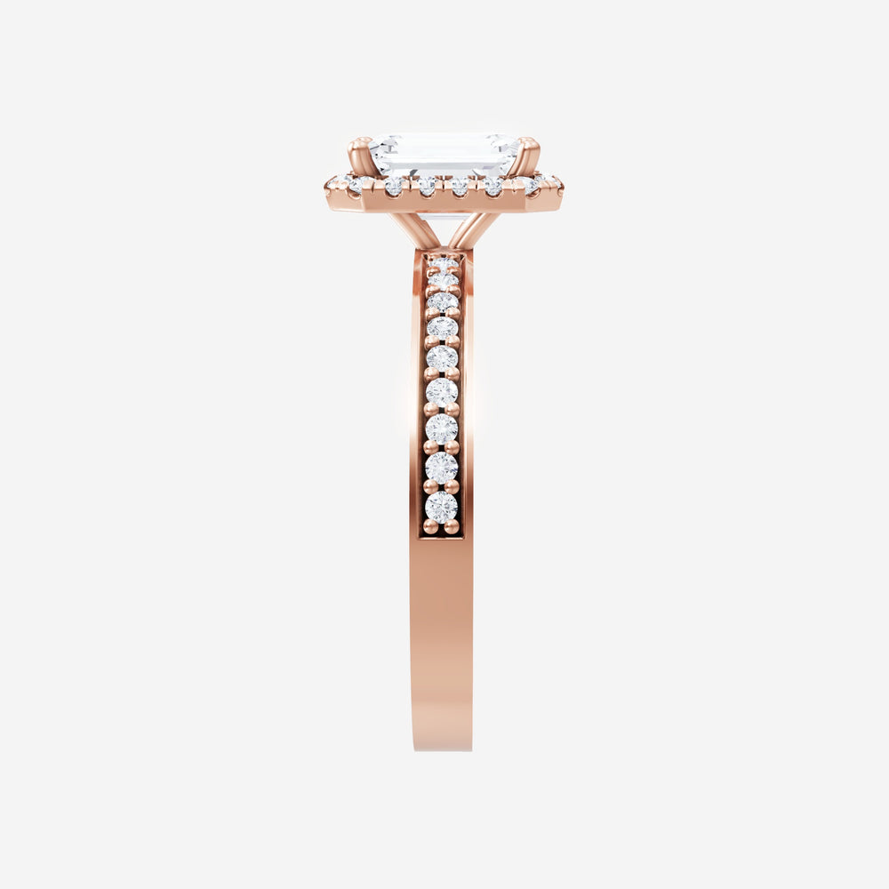 You’ve designed a ring that reflects lasting elegance and grace! Crafted from 18k Rose Gold, this exquisite Emerald lab-grown diamond is the centerpiece of this unique design. This Single Pave Shank with a Micro Halo head showcases the brilliance of the Emerald diamond, creating a timeless look. Ideal for those who seek both beauty and meaning, this ring will stand as a testament to cherished memories.