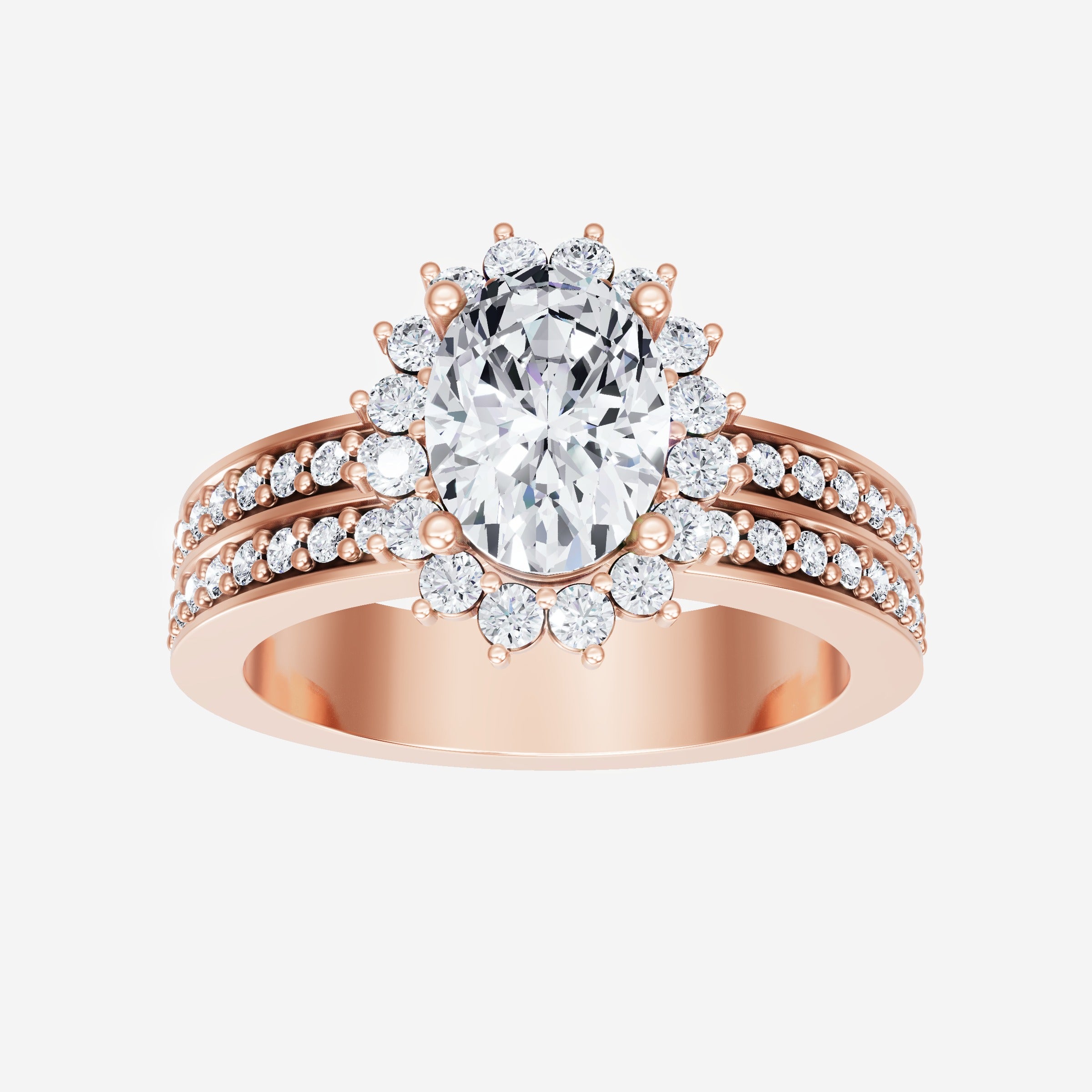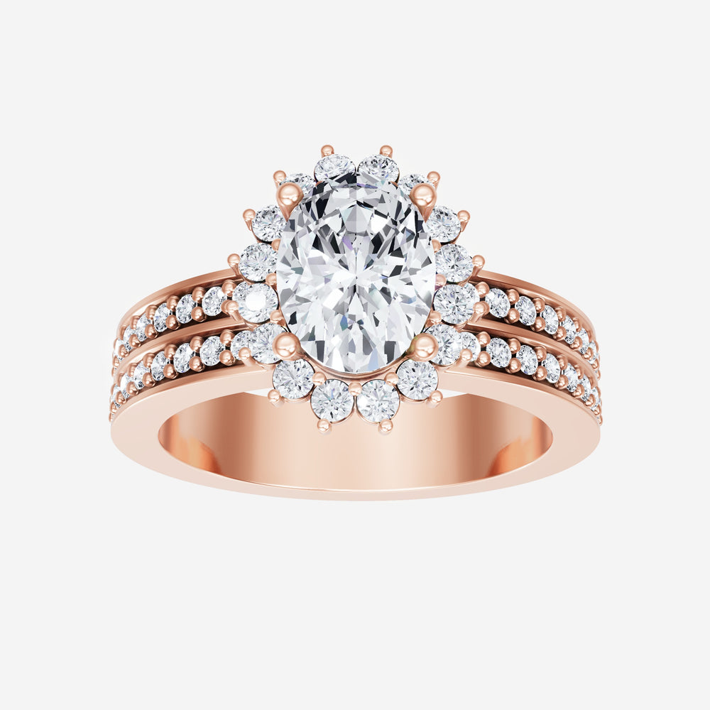 You’ve designed a ring that reflects lasting elegance and grace! Crafted from 18k Rose Gold, this exquisite Oval lab-grown diamond is the centerpiece of this unique design. This Double Row Pave with a Diana Halo head showcases the brilliance of the Oval diamond, creating a timeless look. With this ring, celebrate every moment of joy, success, and love.