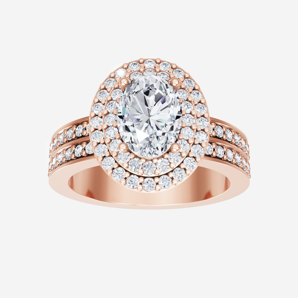 You’ve designed a ring that reflects lasting elegance and grace! Crafted from 18k Rose Gold, this exquisite Oval lab-grown diamond is the centerpiece of this unique design. This Double Row Pave with a Double Halo head showcases the brilliance of the Oval diamond, creating a timeless look. Whether as a gift or a personal treasure, this ring will forever symbolize the most meaningful moments in life.