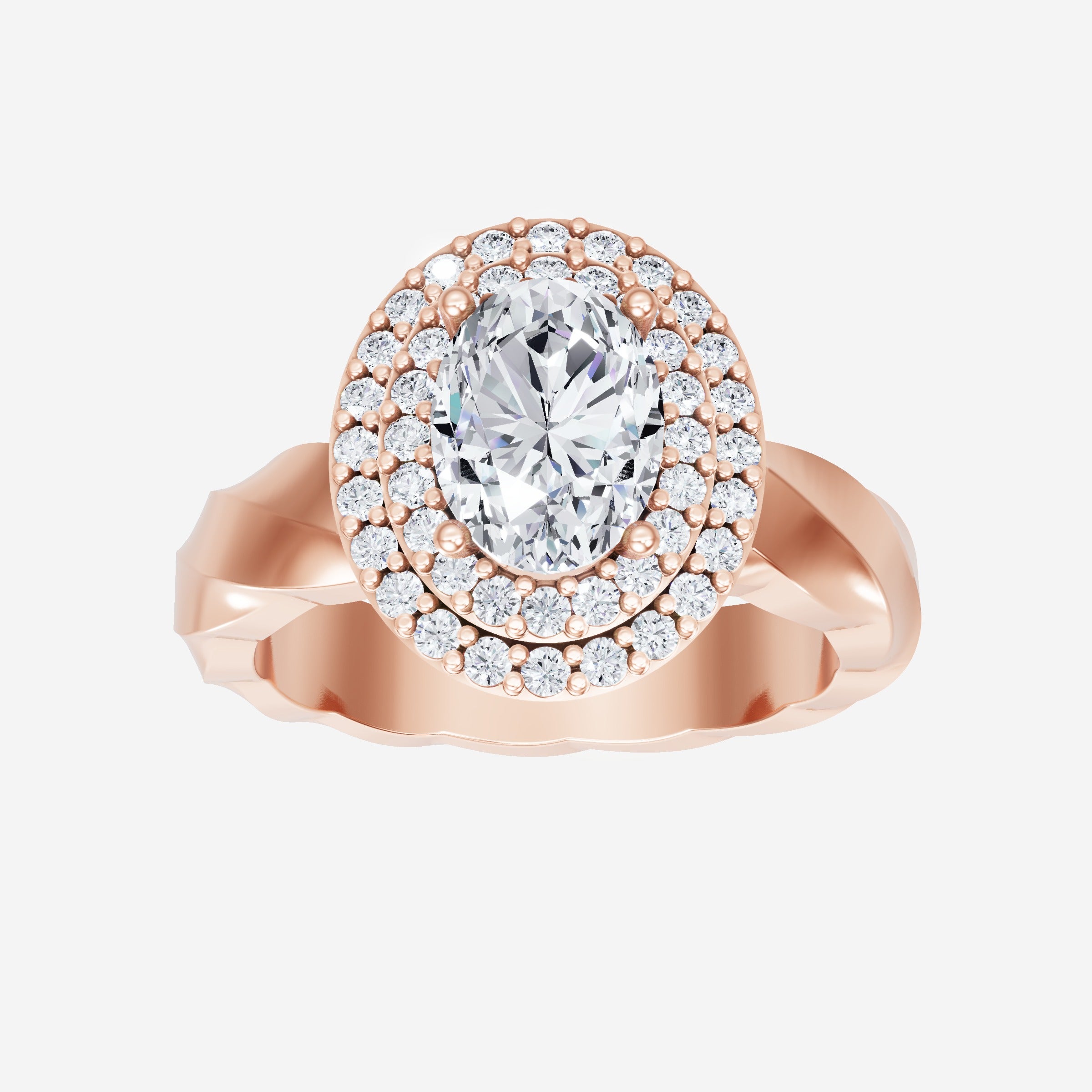 You’ve designed a ring that reflects lasting elegance and grace! Crafted from 18k Rose Gold, this exquisite Oval lab-grown diamond is the centerpiece of this unique design. This Twisted Shank with a Double Halo head showcases the brilliance of the Oval diamond, creating a timeless look. This ring will become a cherished reminder of life's most treasured moments.