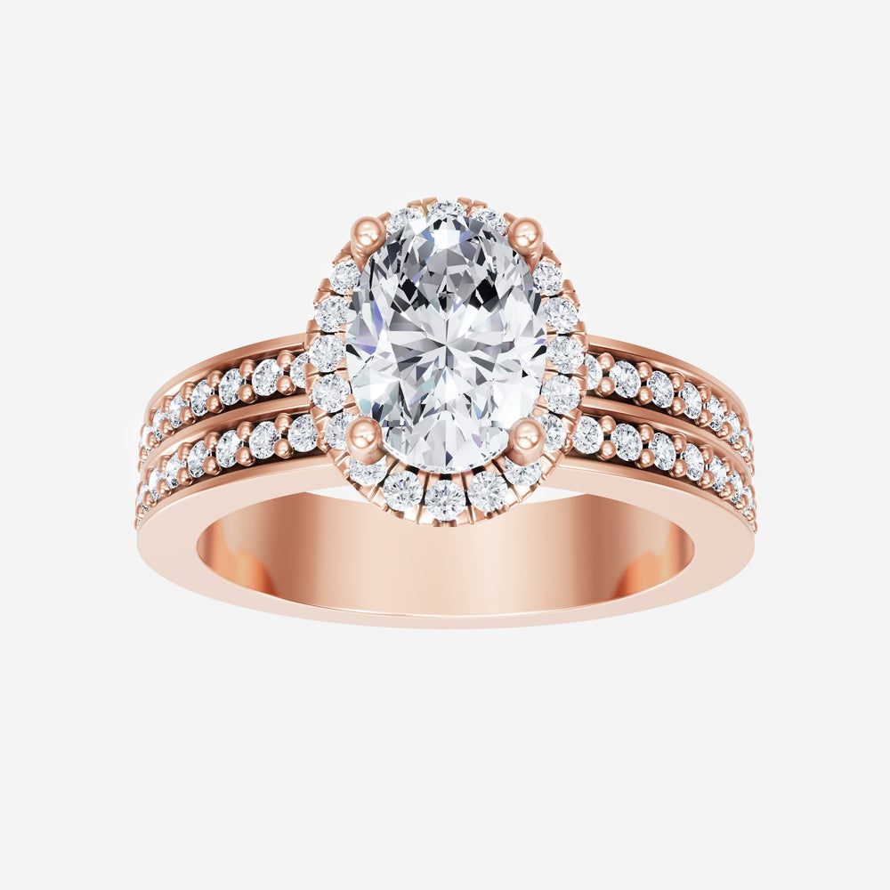 You’ve designed a ring that reflects lasting elegance and grace! Crafted from 18k Rose Gold, this exquisite Oval lab-grown diamond is the centerpiece of this unique design. This Double Row Pave with a Micro Halo head showcases the brilliance of the Oval diamond, creating a timeless look. Ideal for those who seek both beauty and meaning, this ring will stand as a testament to cherished memories.