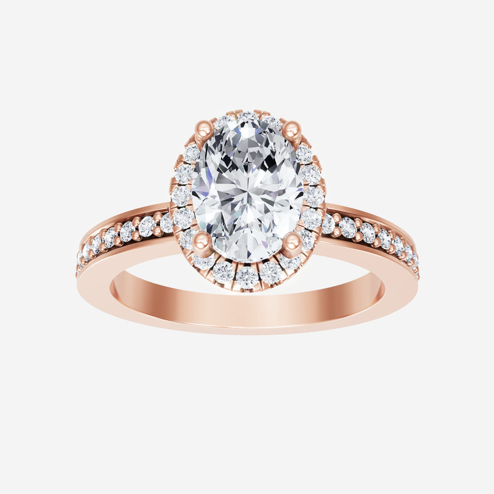 You’ve designed a ring that reflects lasting elegance and grace! Crafted from 18k Rose Gold, this exquisite Oval lab-grown diamond is the centerpiece of this unique design. This Single Pave Shank with a Micro Halo head showcases the brilliance of the Oval diamond, creating a timeless look. With this ring, celebrate every moment of joy, success, and love.