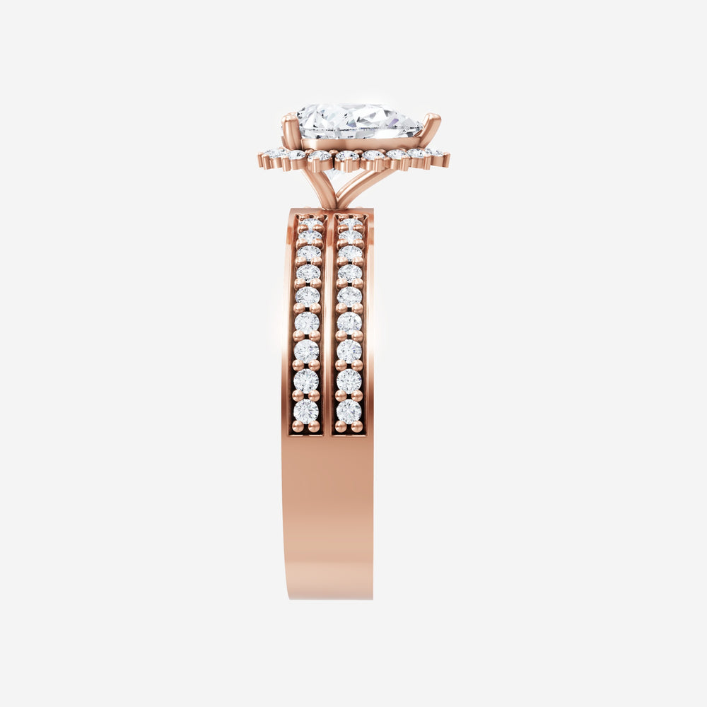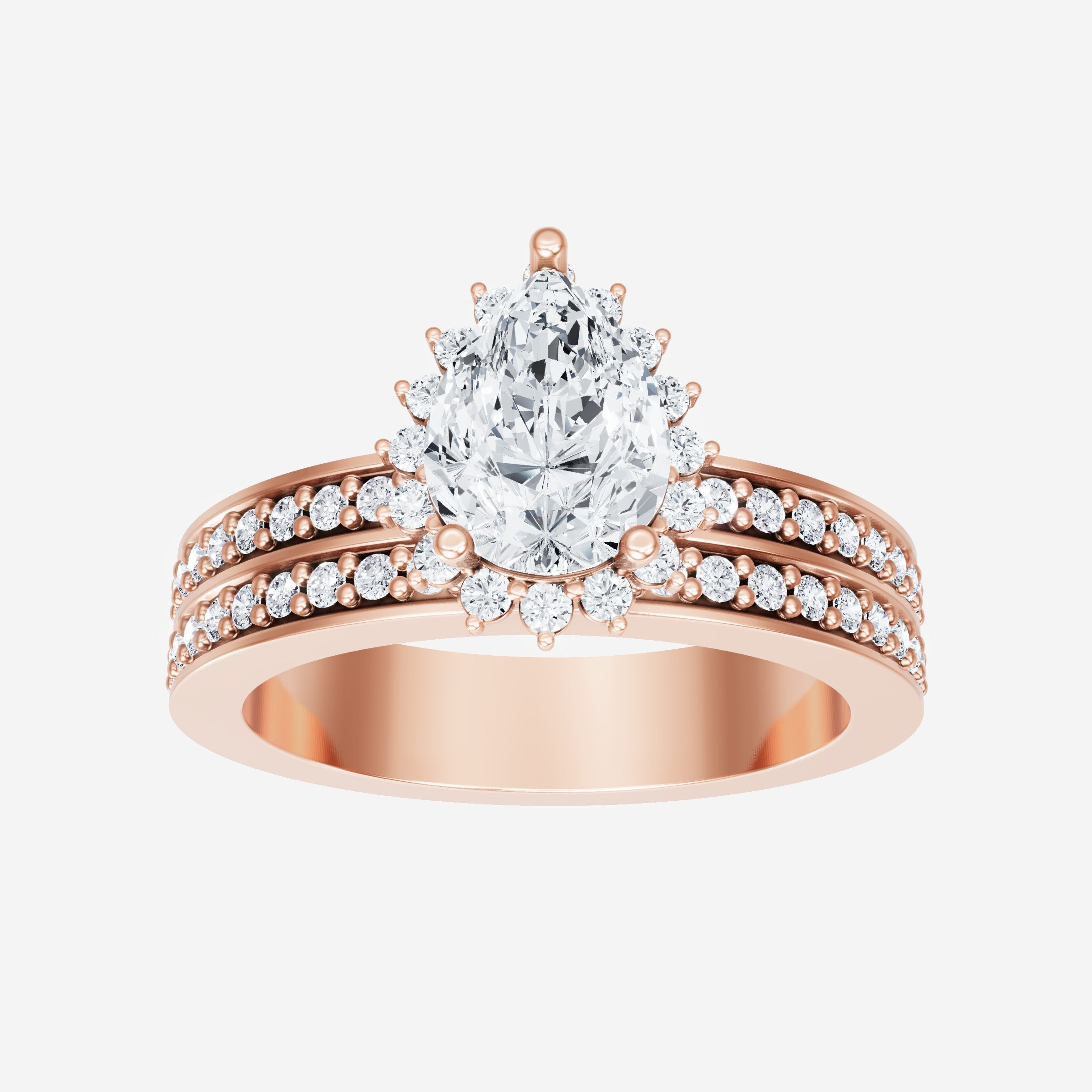 You’ve designed a ring that reflects lasting elegance and grace! Crafted from 18k Rose Gold, this exquisite Pear lab-grown diamond is the centerpiece of this unique design. This Double Row Pave with a Diana Halo head showcases the brilliance of the Pear diamond, creating a timeless look. This ring will become a cherished reminder of life's most treasured moments.