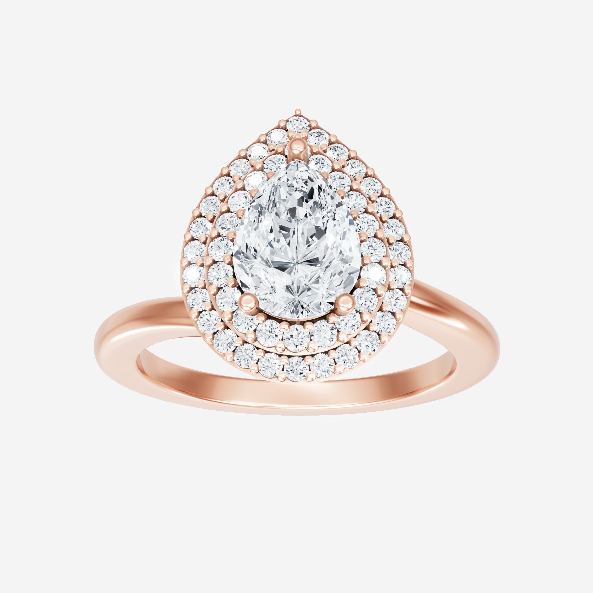 You’ve designed a ring that reflects lasting elegance and grace! Crafted from 18k Rose Gold, this exquisite Pear lab-grown diamond is the centerpiece of this unique design. This Bypass Shank with a Double Halo head showcases the brilliance of the Pear diamond, creating a timeless look. With this ring, celebrate every moment of joy, success, and love.